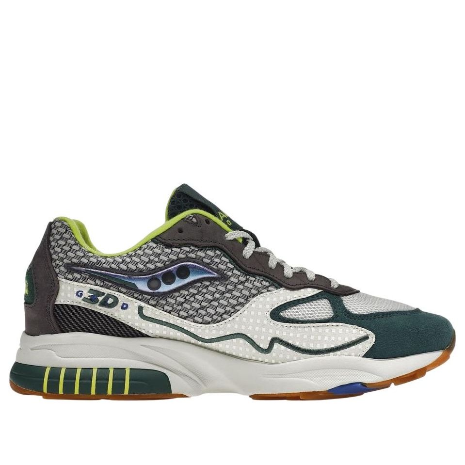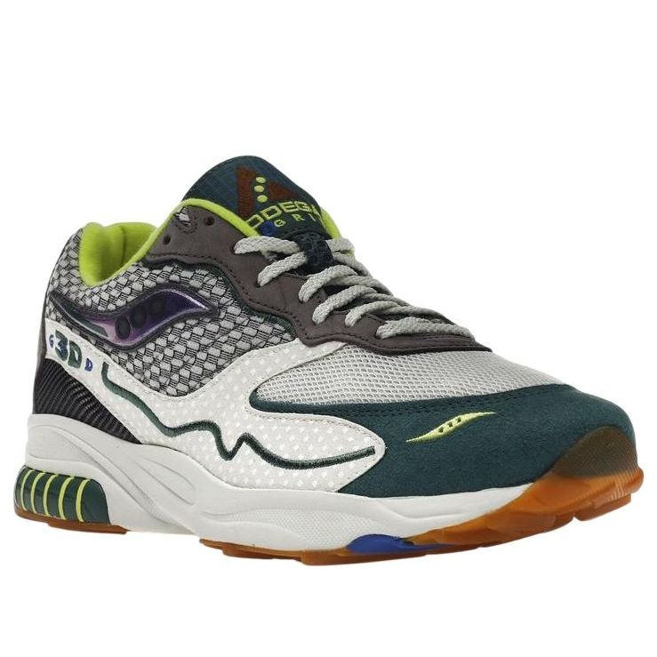 The Saucony 3D Grid Hurricane Bodega is an athletic shoe that features white mesh, green suede, quilted metallic woven fabric, and brown leather. Iridescent Violet Saucony Creek branding appears on the sides. A Sculptural White midsole is accented by striped panels and a gum outsole. Saucony branding appears on the rear, while Bodega Grid branding adorns the tongue. Bodega is a Boston-based sneaker boutique founded in 2006 that is widely considered to have placed Boston on the streetwear map. Known for securing rare shoe releases and collaborations with brands on sneaker designs, Bodega has teamed up with Boston-based Saucony again, a partnership they have explored a few times since initially collaborating in 2008. In our opinion, the best feature of the 3D Grid Hurricane is its appealing mix of patterns, which come together to create one coherent aesthetic. The Saucony 3D Grid Hurricane Bodega released on January 21, 2023, and retailed at $150.