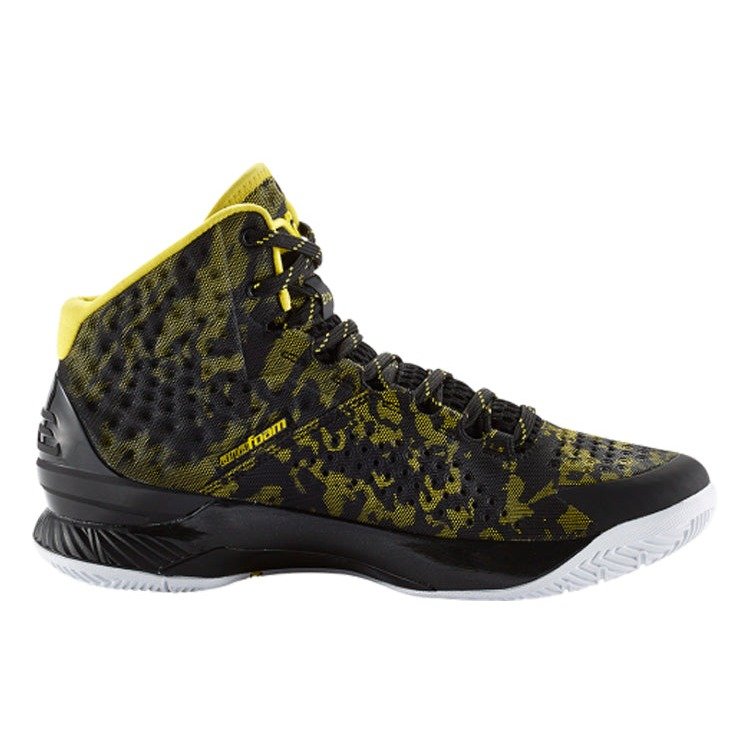 Most of the colorways on the UA Curry One were somewhat simple color blocking, the Under Armour Curry One « Away » featured a unique camouflage finish. The Curry One is Golden State Warriors superstar Stephen Currys first signature sneaker from Under Armour after joining UAs athlete roster in 2013. The « Away » version of the Curry One gets its nickname because it was the colorway that was pretty much the go-to choice for Currys road games during the 2014-2015 NBA season. The Under Armour Curry featured a single color applied to most versions but the Away Curry One featured a camo design across the « anaFoam » upper. Interestingly, the Away colorway features black and yellow (officially called Black/Taxi) but did not feature any of the Golden State Warriors blue. Although, that didnt prevent the Away Curry 1 from selling. Although that might have something to do with Currys performance on the court. After all, Stephen Curry became the first NBA player to win an NBA title while wearing his very first signature sneaker. Then again, maybe the Charged Foam cushioning that has the Curry One so highly regarded by amateur ballers helped. The perfect storm of performance and hype helped make the Curry One one of UAs best sellers and the Under Armour Curry One « Away » only helped that cause.