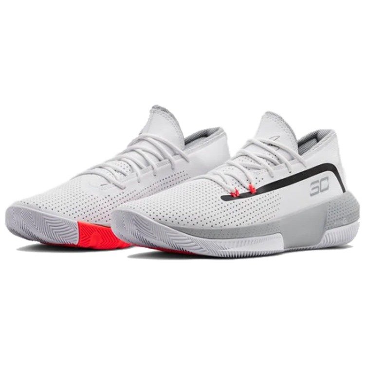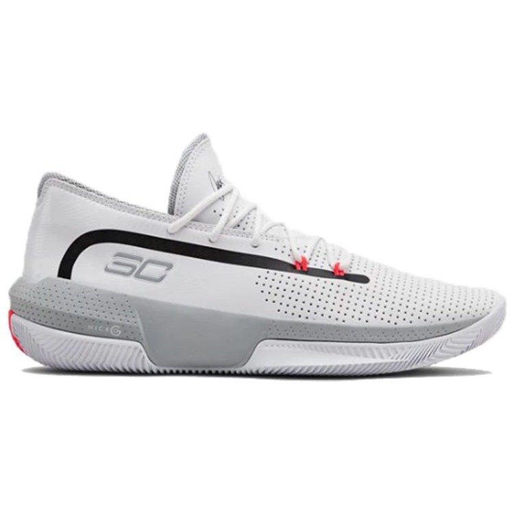 The Under Armour Curry SC 3Zero 3 White Black Grey features a White/Black/Grey colorway.
