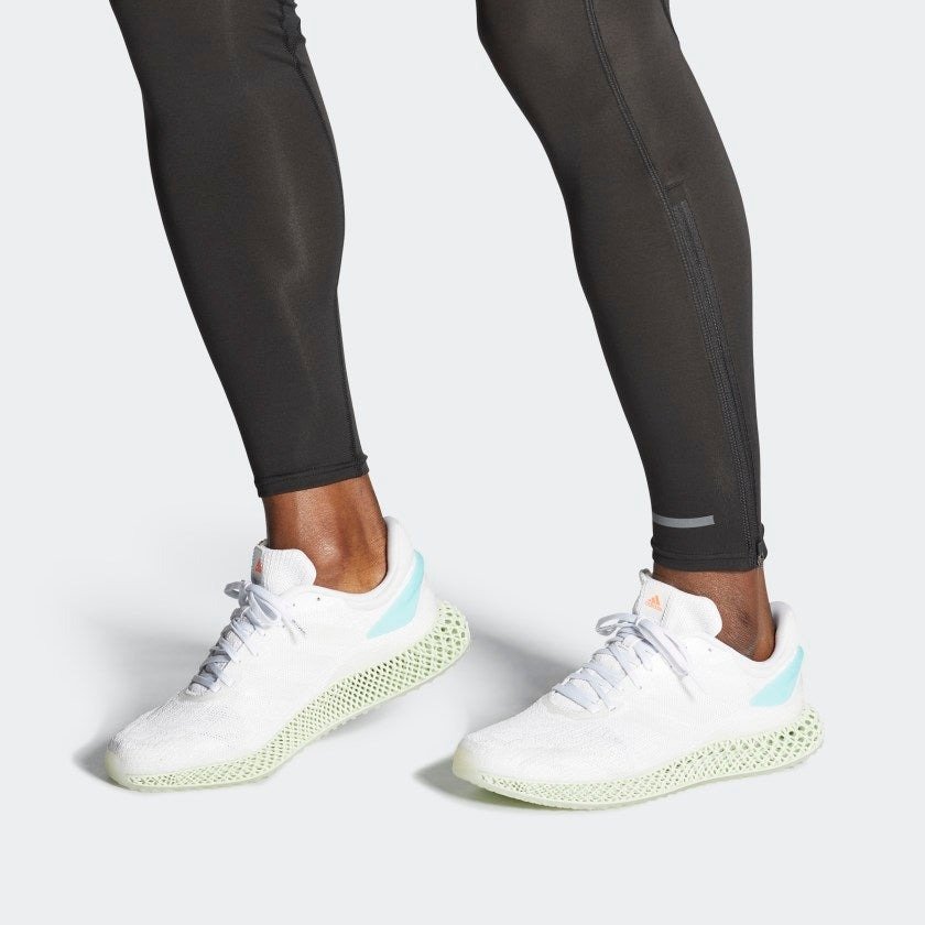 The adidas 4D Run 1.0 Parley embodies a fusion of style, comfort, and sustainability by employing a Cloud White Parley Ocean Plastic upper, crafted entirely from recycled plastic waste from the oceans. The Parley adidas 4D Run 1.0 eco-conscious approach aligns seamlessly with the shoes aesthetic, boasting a white Primeknit upper adorned with iridescent accents along the iconic three-stripes emblem and external heel clip. The color scheme includes white and iridescent hues, accented by a Blue Spirit heel wrap and a subtle salmon logo on the tongue, drawing inspiration from the vibrant colors of Miami. A key element of the design lies in its innovative 3D-printed midsole, featuring a pale green lattice structure that contributes to the shoes lightweight construction. The notable standout of the adidas 4D Run 1.0 Parley is the unique 3D-printed lattice structure integrated into the sole. This groundbreaking feature enhances the shoes performance by delivering varied running dynamics across distinct areas of the sole, contributing to an optimized running experience. The shoe debuted for $220 on the 30th of January, 2020.