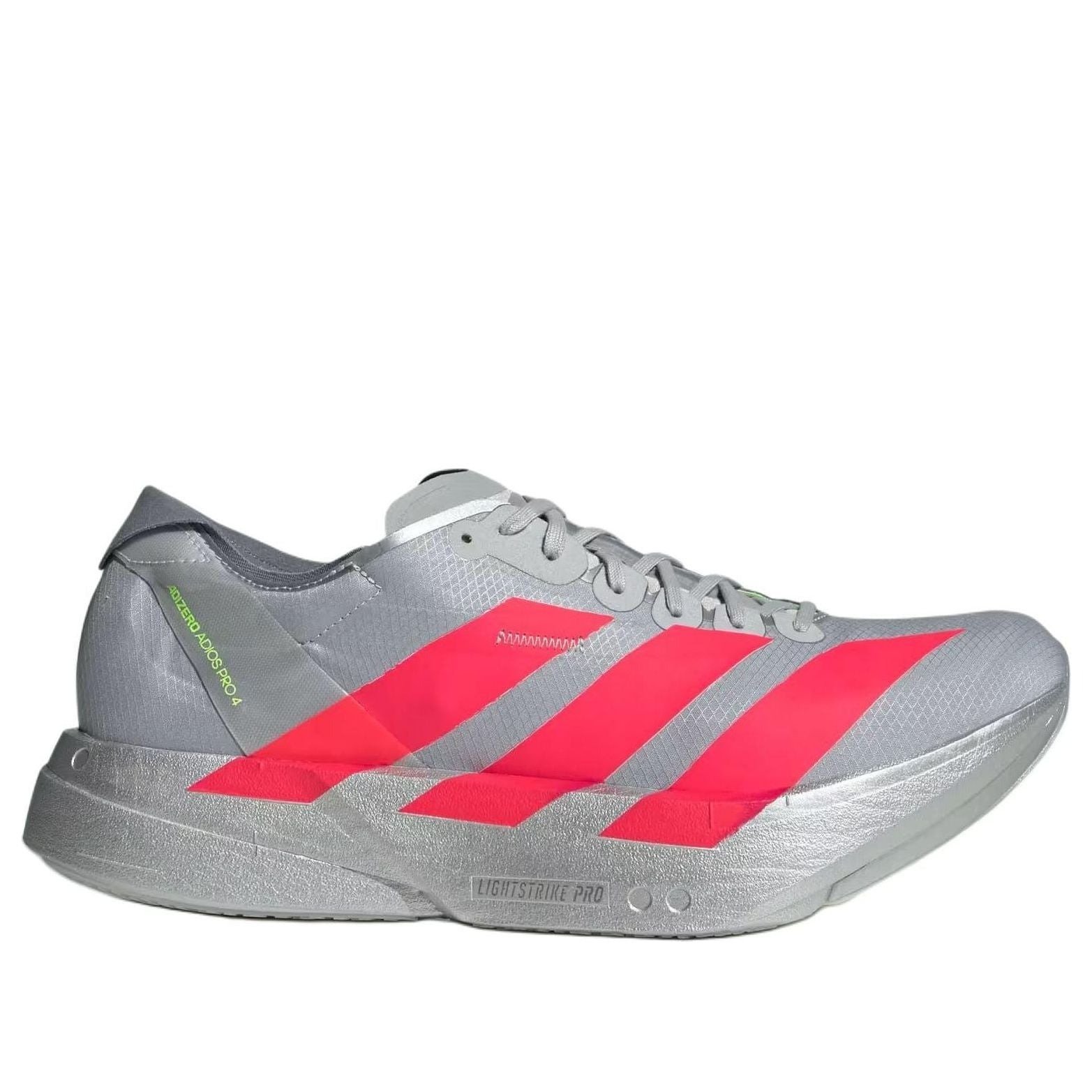 The adidas Adizero Adios Pro 4 Ekiden Pack features a Silver Metallic/Lucid Red/Grey colorway. This adidas Adizero Adios Pro 4 was first released for $250 on December 01, 2024.