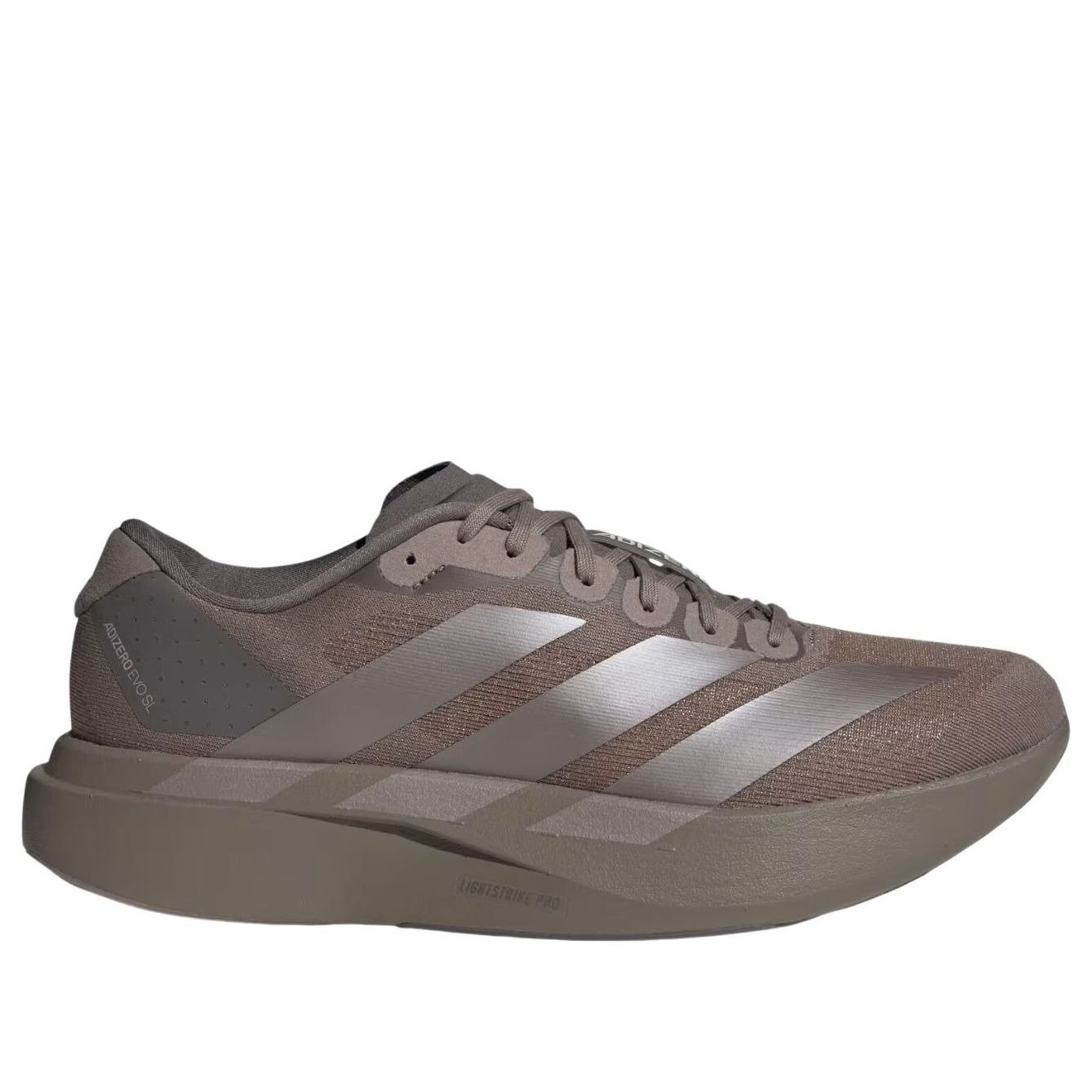 The adidas Adizero Evo SL Charcoal Aurora Black features a Charcoal/Coffee Metallic/Aurora Black colorway. This adidas Adizero Evo SL was first released for $150 on December 04, 2025.