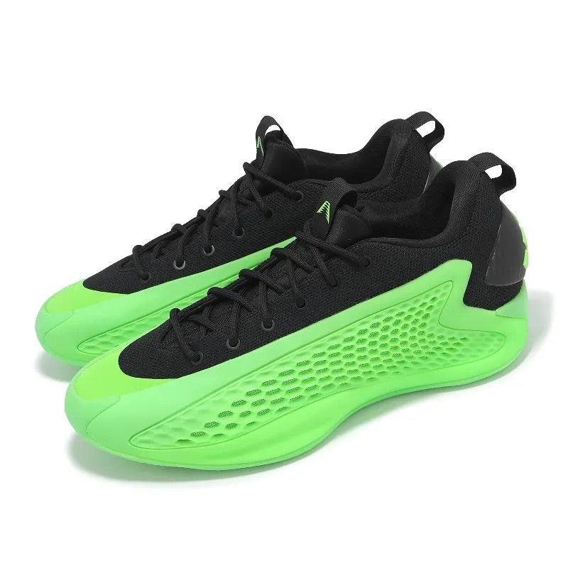 The adidas AE 1 Low Lucid Slime merges cutting-edge basketball performance with striking visual appeal. This beautiful design balances innovation with comfort and features bold green accents on a black base. Its tailored for dynamic on-court play and everyday use. The Slime AE 1 Low by adidas features a black mesh upper enhanced by generative support wings in fluorescent-green coloring, creating a honeycomb structure for improved breathability. TPU sidewalls bolster stability, while a responsive Boost midsole ensures cushioning while walking or running. The shoe has Anthony Edwards logo on the tongue and the adidas 3-Stripes visible on the heel counter. One thing we love about the adidas AE 1 Low Lucid Slime is its generative support wings that give you optimal airflow and support during high-intensity movement. The full-length Boost midsole is another great feature that delivers responsive comfort. Retailing at $110, this model debuted on September 21, 2024 .