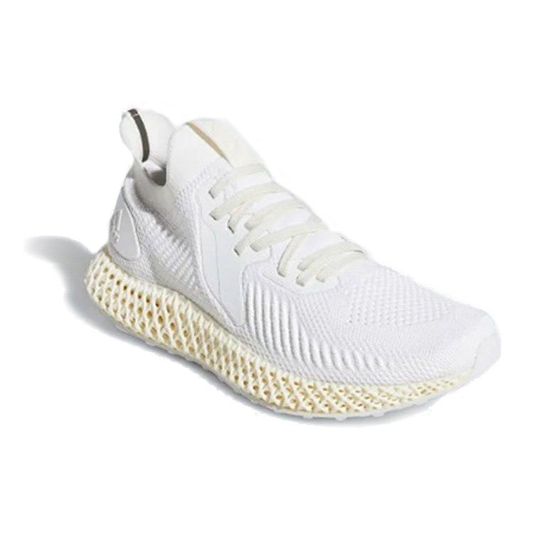 The adidas Alphaedge 2 4D White is a cross-training shoe constructed with innovative technology and designed with undeniable style. The white adidas Alphaedge 2 4D features an upper of white Primeknit that provides a sock-like feel and flexibility across the entire foot. Thin white-on-white TPU overlays hit the side panel and the heel, while the toe is reinforced with thicker Primeknit. White laces thread through asymmetrically placed eyelets for a snug fit. Tonal embossed branding adorns the heel overlays, while the tongue tag features the adidas three stripes. The cream-colored midsole was crafted using a 3D printer to create the lattice-work foam that provides stable cushioning and energy return. A white Continental rubber outsole lies underneath. The detail that we enjoy most about this future-forward sneaker is the black stripe that adds a pop of contrast to the upper. It courses vertically up the heel to the pull tab, which eases on/off for this pair of kicks. The adidas Alphaedge 2 4D White was released on July 22, 2019, and retailed for $300.