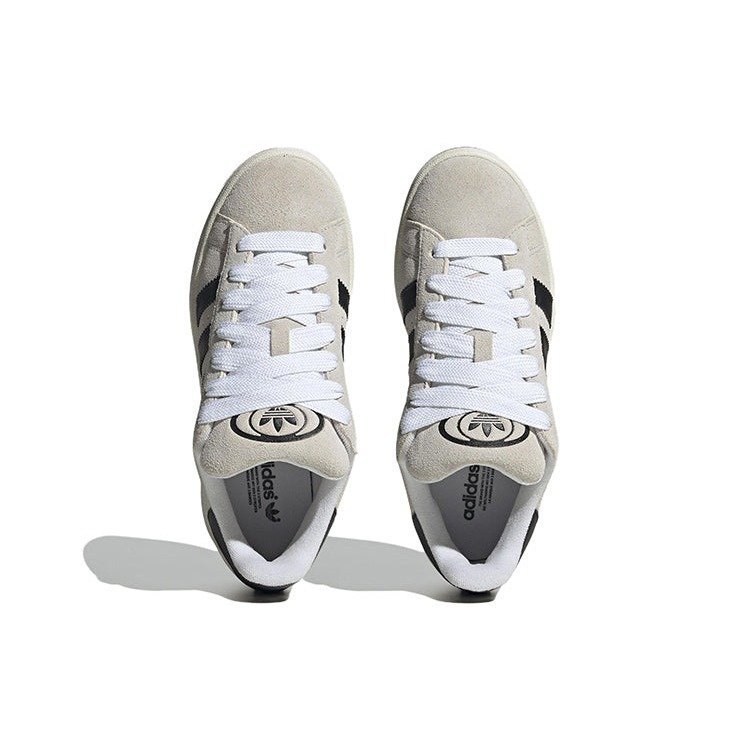The adidas Campus 00s in Crystal White Core Black (Women) is a chunky sneaker with a design inspired by retro skate culture. Combining elements of skate culture with modern technology and design, this sneaker aims to evoke nostalgia in skaters who long for the glory days. This sneaker for women keeps the classic look of the adidas Campus but adds a modern twist. The shoe is made of brushed leather in a white colorway, with off-white detailing and black accents. You can find the black accents on the heel and adorning the classic adidas 3-Stripes on the side of the shoe. The word “CAMPUS” appears in black next to the stripes. Black branding is also present on the tongue. Our Newsole experts think this shoe stands out because of its simple and nostalgic look. This iteration of the original adidas Campus designed in the 1970s provides the chunky look in a classic colorway that wearers can pair with any outfit. The adidas Campus 00s in Crystal White Core Black for women was released on March 6th, 2023, at a retail price of $110.