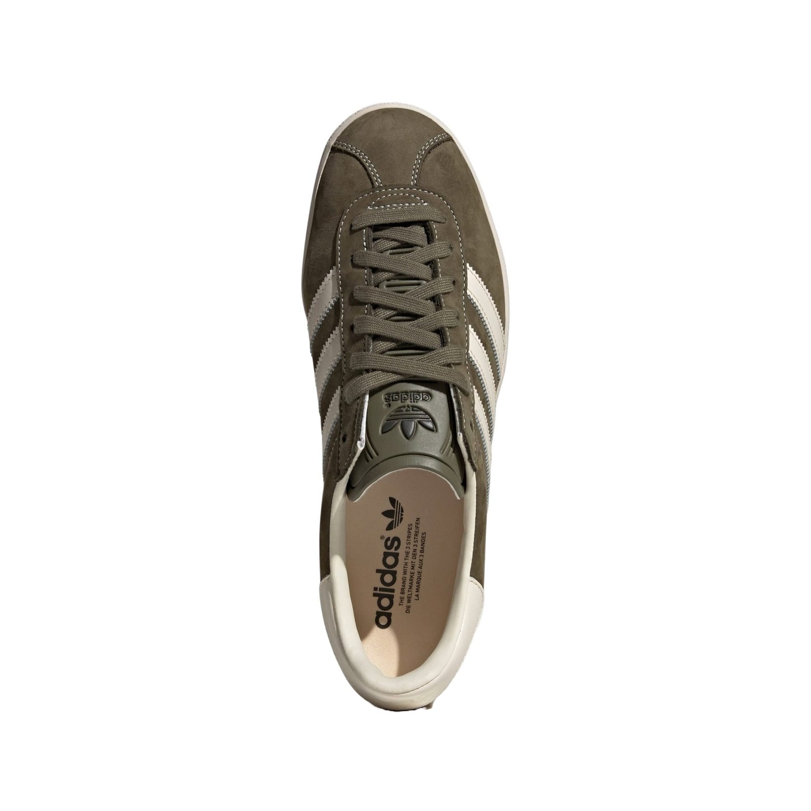The adidas Gazelle 85 Olive Strata features a Olive Strata/Chalk White/Wonder White colorway. This adidas Gazelle 85 was first released for $130.