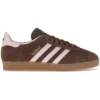 The adidas Gazelle Auburn Clear Pink brings a fresh and vibrant twist to the iconic silhouette. This men’s sneaker features a rich auburn suede upper, complemented by clear pink accents that add a touch of softness to the design. The classic Gazelle profile is enhanced with the signature three stripes in a contrasting hue, creating a striking visual appeal. A gum rubber outsole provides excellent traction and durability, while also adding a classic touch to the overall aesthetic. Comfort is key in this iteration of the Gazelle, with a cushioned insole and padded collar ensuring a snug and supportive fit. The low-top design offers versatility, making it suitable for various casual occasions. Whether paired with jeans for a laid-back look or dressed up with chinos for a more polished ensemble, these sneakers effortlessly blend style and functionality. Our experts state this product is great for those seeking a timeless sneaker with a modern color palette, perfect for adding a pop of color to any outfit while maintaining the classic Gazelle charm.