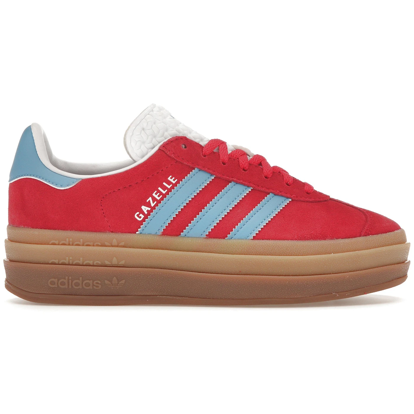 The adidas Gazelle Bold Active Pink Blue Burst (Women’s) adds an Active Pink base and Semi Blue Burst accents to the platformed Gazelle Bold silhouette.Like other Gazelle Bold models, the Active Pink Blue Burst version features three layers of stacked gum rubber underfoot. The top two layers come in light gum, while the bottom layer is darker. Beneath the heel, “adidas” is debossed on each layer. Sticking to OG Gazelle roots, the upper is crafted from suede in Active Pink, with tonal suede on the T-shaped toebox overlay. The serrated 3-Stripes and the heel tab come in Semi Blue Burst, which contrasts the base. The front lace closure provides an adjustable fit, while the laces are dyed Active Pink.Our experts at Newsole like the heritage adidas branding on the tongue logo tag. The women s size adidas Gazelle Bold Active Pink Blue Burst (Women’s) was released on December 15, 2023, and sold for $100.