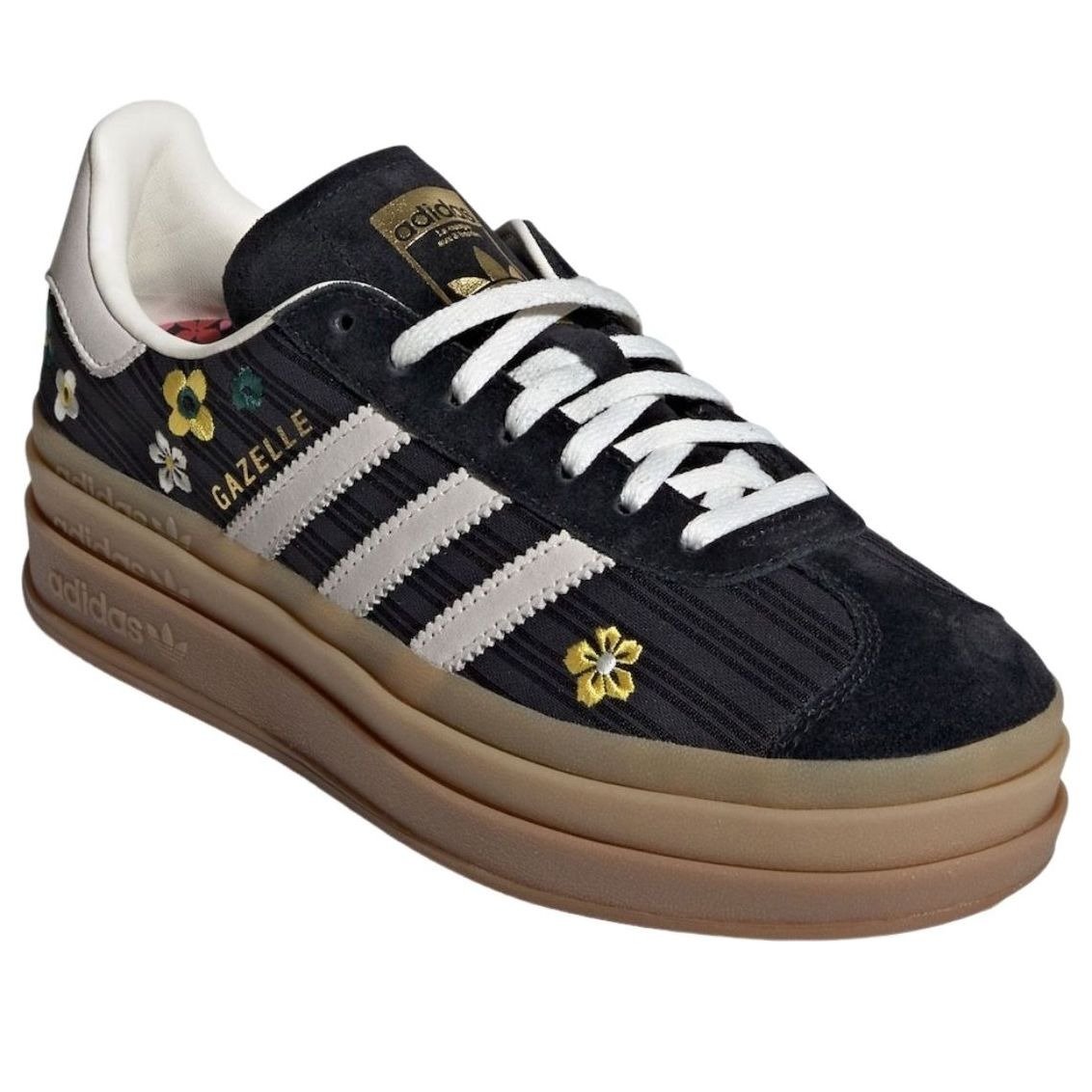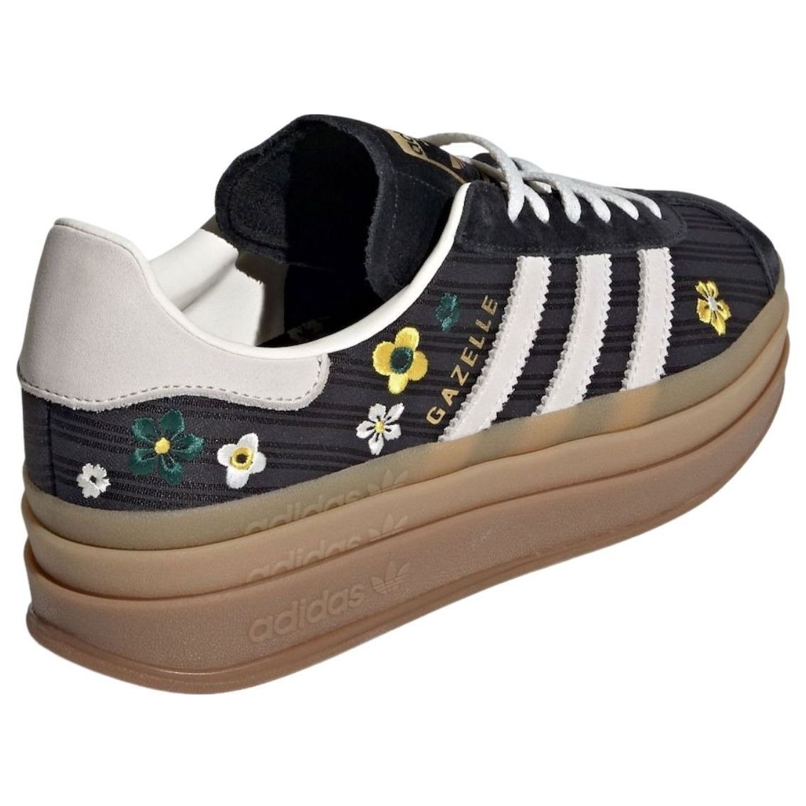The adidas Gazelle Bold Liberty London Black (Womens) features a Core Black/Off White/EQT Yellow colorway.