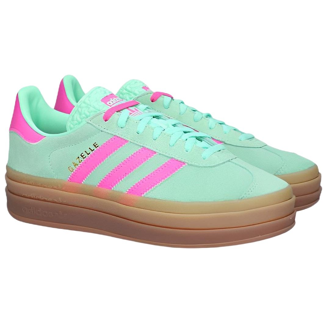 The adidas Gazelle Bold Pulse Mint Pink (Women’s) arrives in a Pulse Mint, Screaming Pink, and Gum color palette.The Pulse Mint Pink adidas Gazelle Bold adopts the timeless low-top silhouette and adds on a suede upper for a classic look. The lace-up closure ensures a secure and customizable fit, while the padded collar provides added comfort. With a cushioned midsole for enhanced comfort and impact absorption, the shoe offers a durable rubber outsole for reliable traction. The signature 3-Stripes branding and adidas Trefoil logos adorn the sides, while the “GAZELLE” inscription adds a distinctive touch to the side panel.The standout feature of the adidas Gazelle Bold Pulse Mint Pink (Women’s) is its vibrant color scheme, combining bold pulses of mint and pink. This eye-catching design adds a stylish and playful element to the classic Gazelle silhouette. The women s rendition of the adidas Gazelle was released on December 6th, 2022, and sold for a retail price of $120.