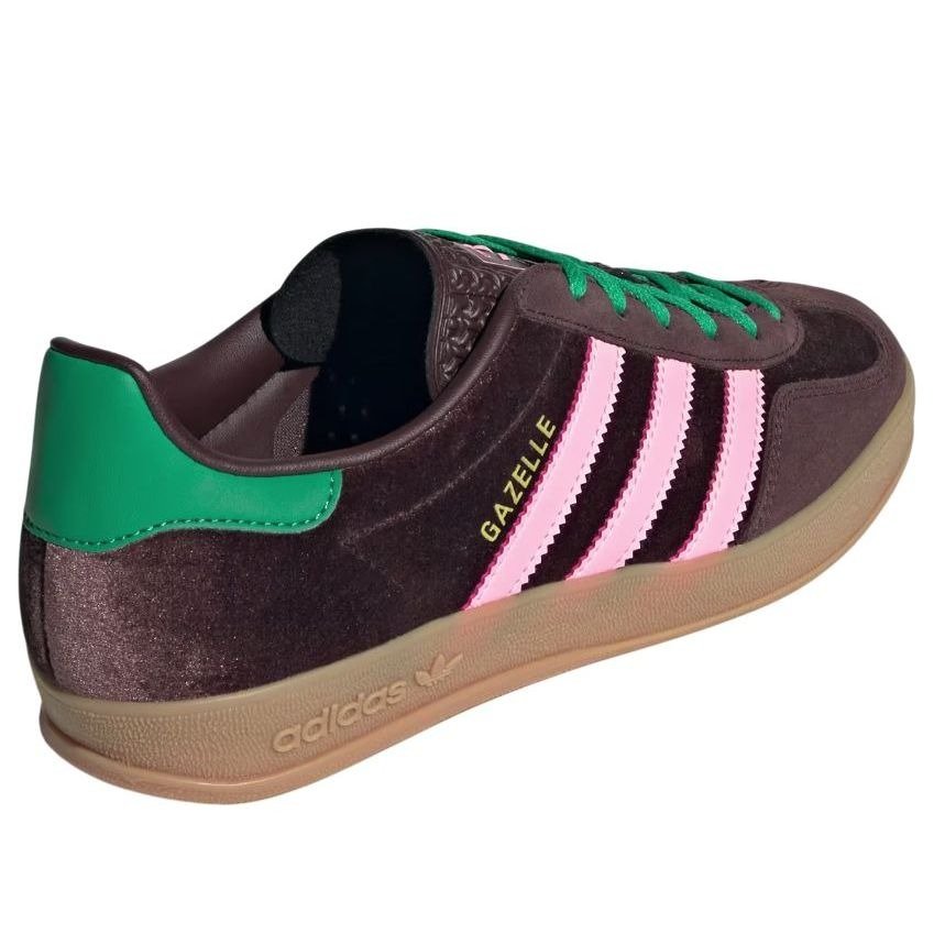The adidas Gazelle Indoor Brown Velvet (Women’s) features a Brown/Pink/Green colorway. This adidas Gazelle Indoor was first released for $130 on November 24, 2024.