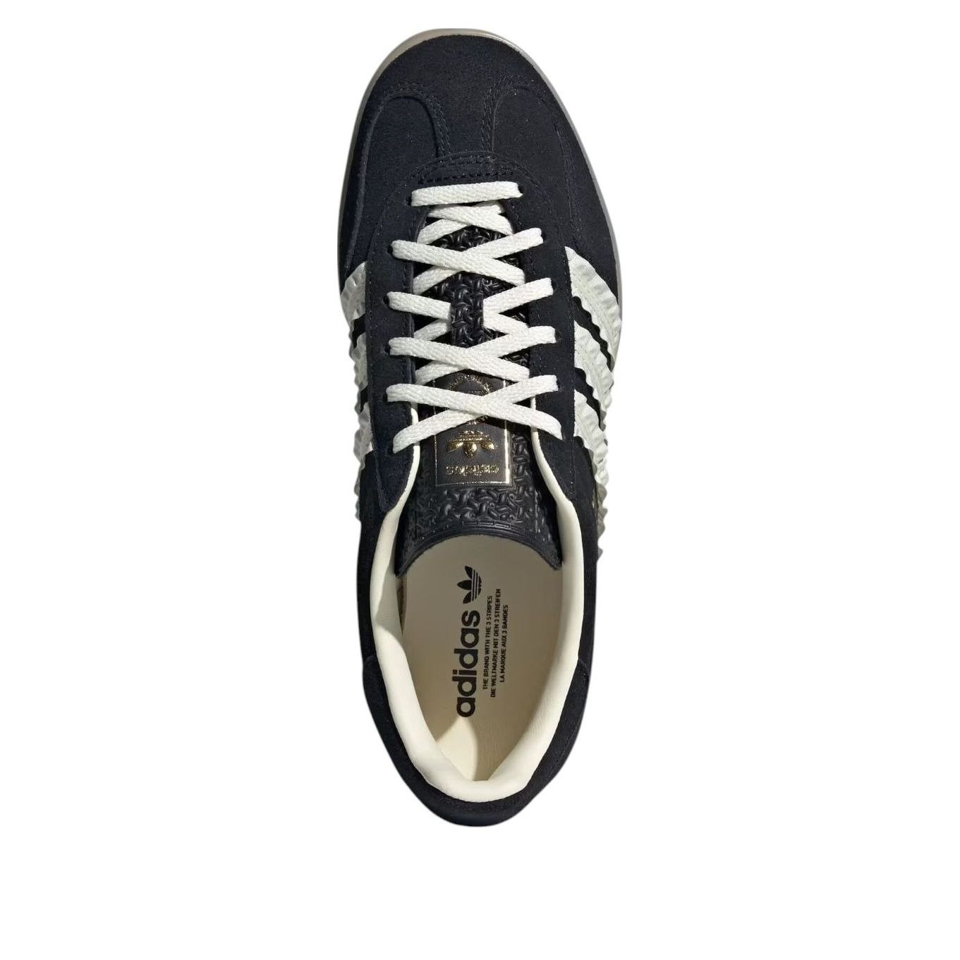 The adidas Gazelle Indoor Core Black Cream White Gum (Women’s) features a Core Black/Cream White/Gum colorway. This adidas Gazelle Indoor was first released for $120.