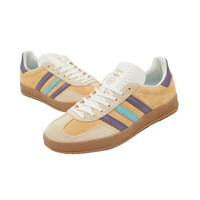The adidas Gazelle Indoor Glow Orange Shadow Violet features a Glow Orange/Shadow Violet/Off White colorway. This adidas Gazelle Indoor was first released for $120 on February 05, 2024.