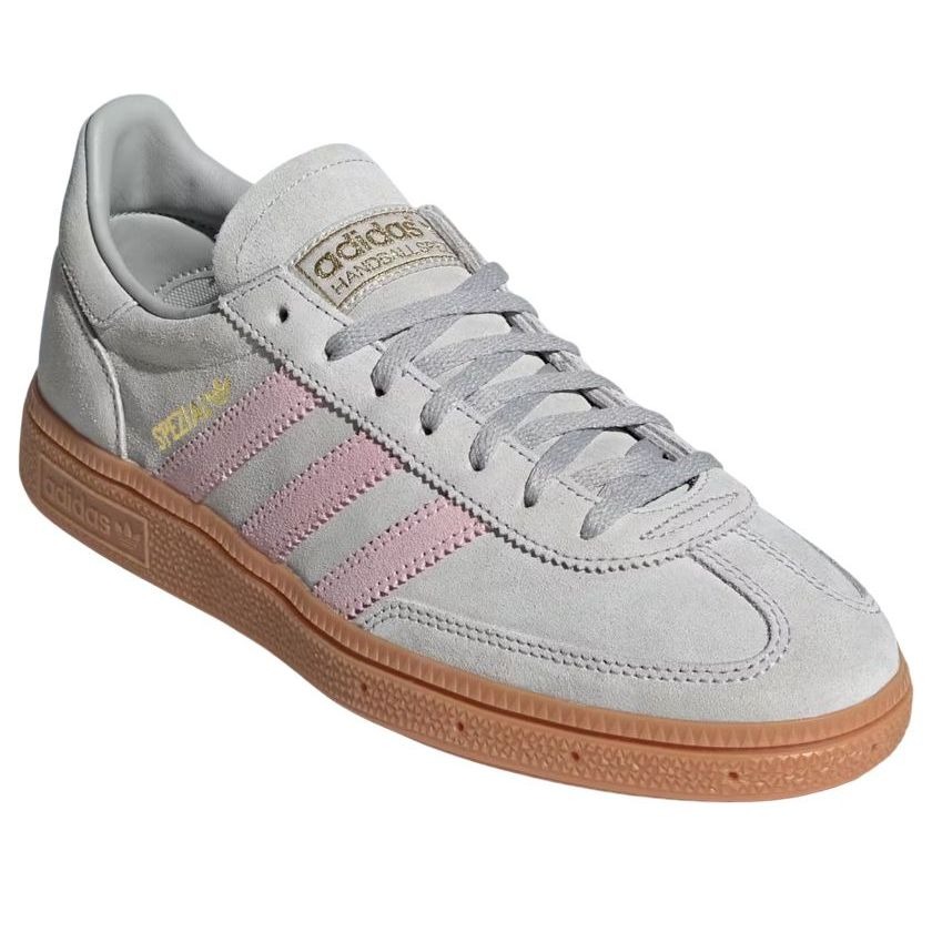 The adidas Handball Spezial Grey Clear Pink (Women’s) features a Grey Two/Clear Pink/Gold Metalic colorway. This adidas Handball Spezial was first released for $110.
