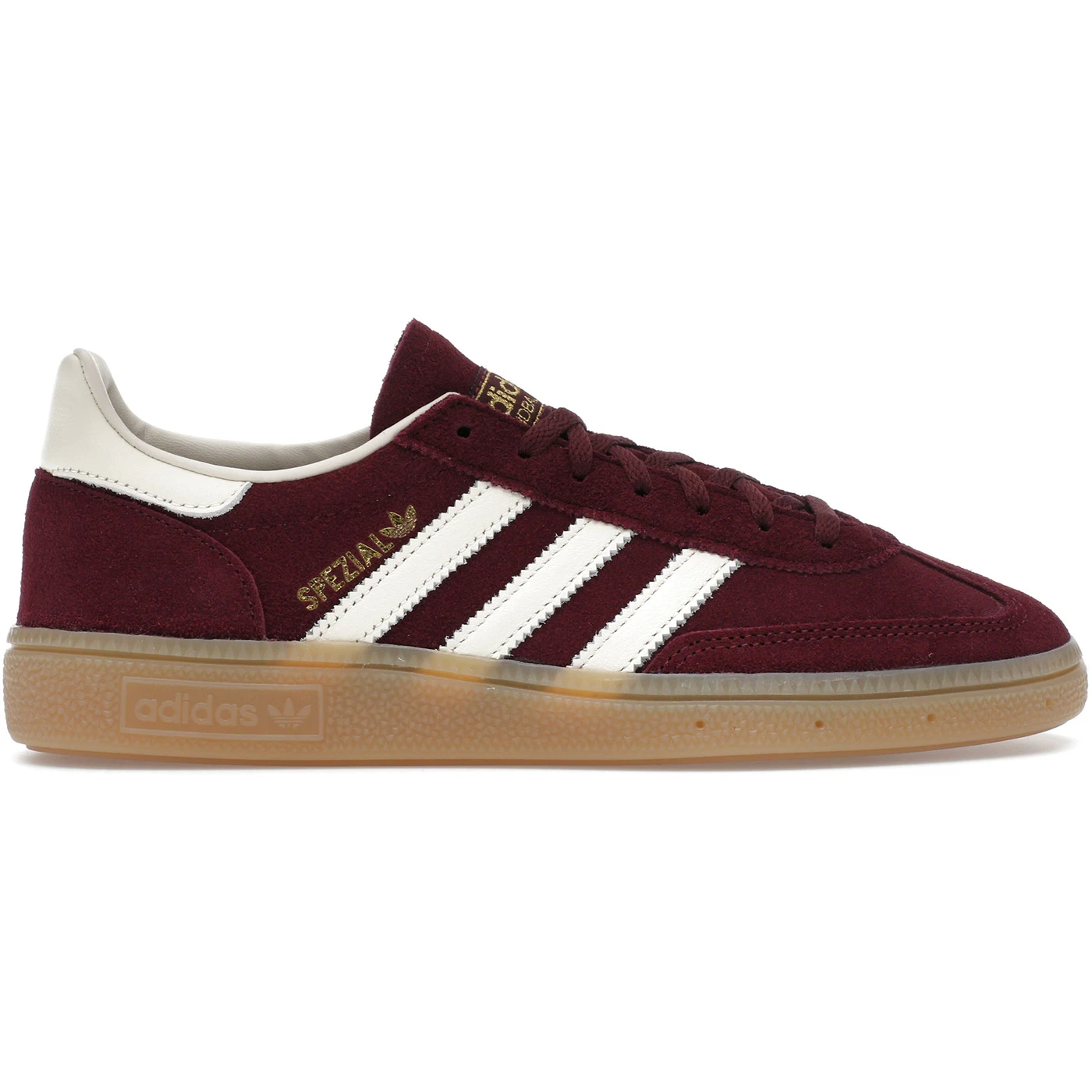 The adidas Handball Spezial Maroon Cream White (Women’s) features a Maroon/Cream White/Gold Metallic colorway. This adidas Handball Spezial was first released for $110 on April 22, 2025.