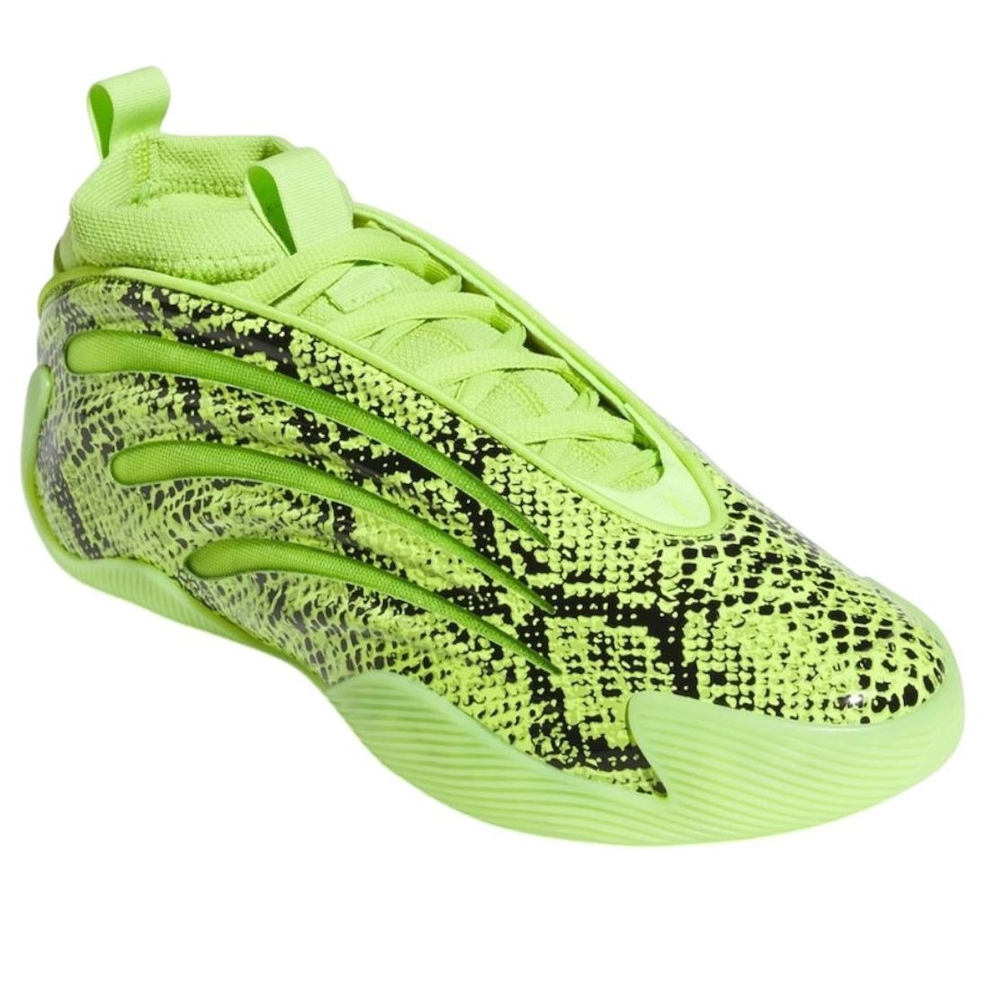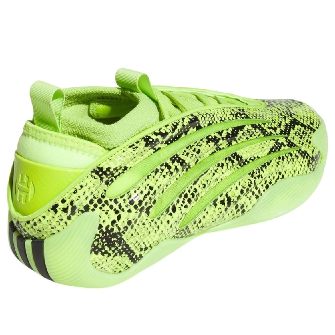 The adidas Harden Vol. 9 Green Snakeskin features a Solar Slime/Core Black/Solar Slime colorway. This adidas Harden Vol. 9 was first released for $160 on October 17, 2025.