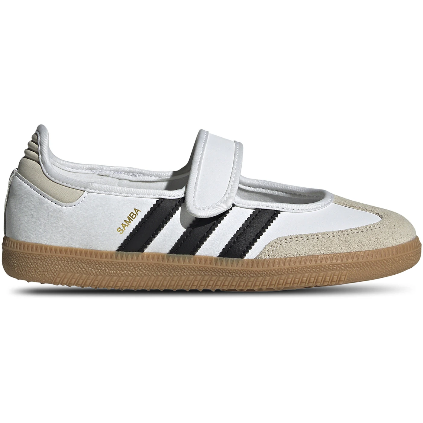 The adidas Samba Jane White Black Gum (GS) features a Footwear White/Alumina/Gum colorway. This adidas Samba Jane was first released for $80 on July 01, 2025.