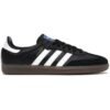 Of course, as their name suggests, the shoes are black and cloud-white and come with white or black shoelaces made of polyester and plastic. adidas Samba Black-White Gum’s tongue is branded with the adidas logo. Samba branding is just beneath the collar, close to the stripes on the sides of the sneakers.