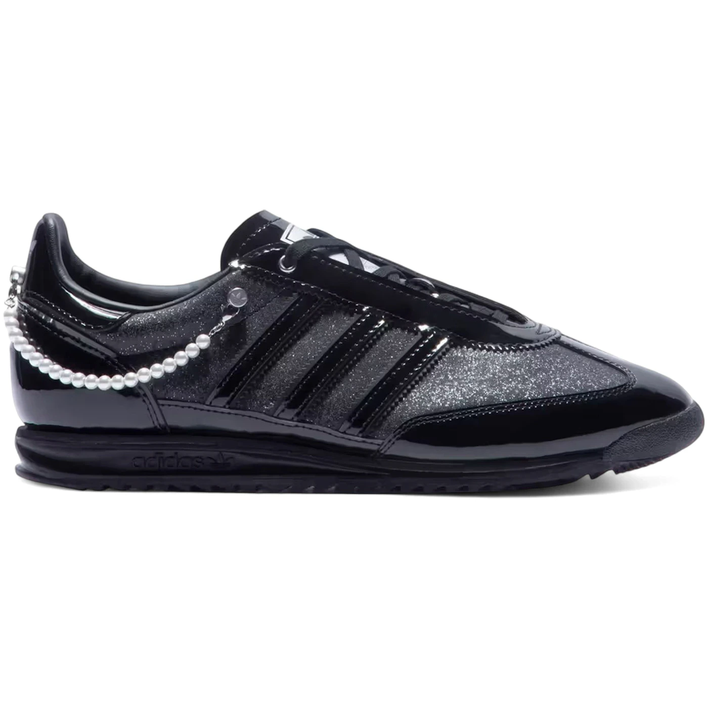 The adidas SL 72 OG Black Patent Pearls (Women’s) features a Core Black/Core Black/Silver Metallic colorway. This adidas SL 72 OG was first released for $100.