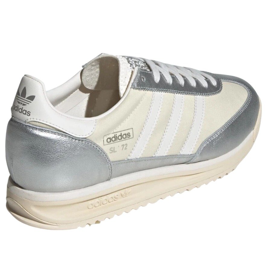 The adidas SL 72 RS Silver Metallic Cloud White features a Silver Metallic/Cloud White/Wonder White colorway. This adidas SL 72 RS was first released for $100.