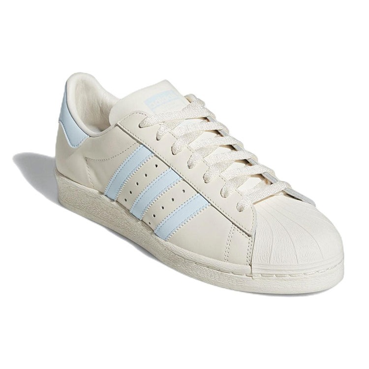 The adidas Superstar 82 Cloud White Sky Tint features a Cloud White/Sky Tint/Off White colorway. This adidas Superstar 82 was first released for $110.