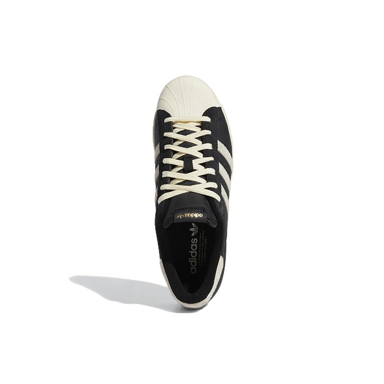 The adidas Superstar 82 Core Black Cream White is a classic colorway boasting a Core Black and Cream White color scheme.This silhouette is from adidas s iconic Superstar 82 line known for its rubber shell toe. This iteration sports a supple leather, Core Black upper. Donning the sides are the iconic 3-Stripes in Cream White with notched edges and perforations nestled between them. The furry suede heel counter is in Cream White as are the flat laces. Further adidas branding in aluminum sits on the tongue in the form of a patch with lettering and the trefoil logo. The large Cream White cupsole provides traction and adds a bit of height.We think the standout feature of this sneaker is the timeless aesthetic and versatile design. No matter what you re wearing, this sneaker will elevate it and be the finishing touch. The adidas Superstar 82 Core Black Cream White was released on December 28, 2021, and retailed for $125.