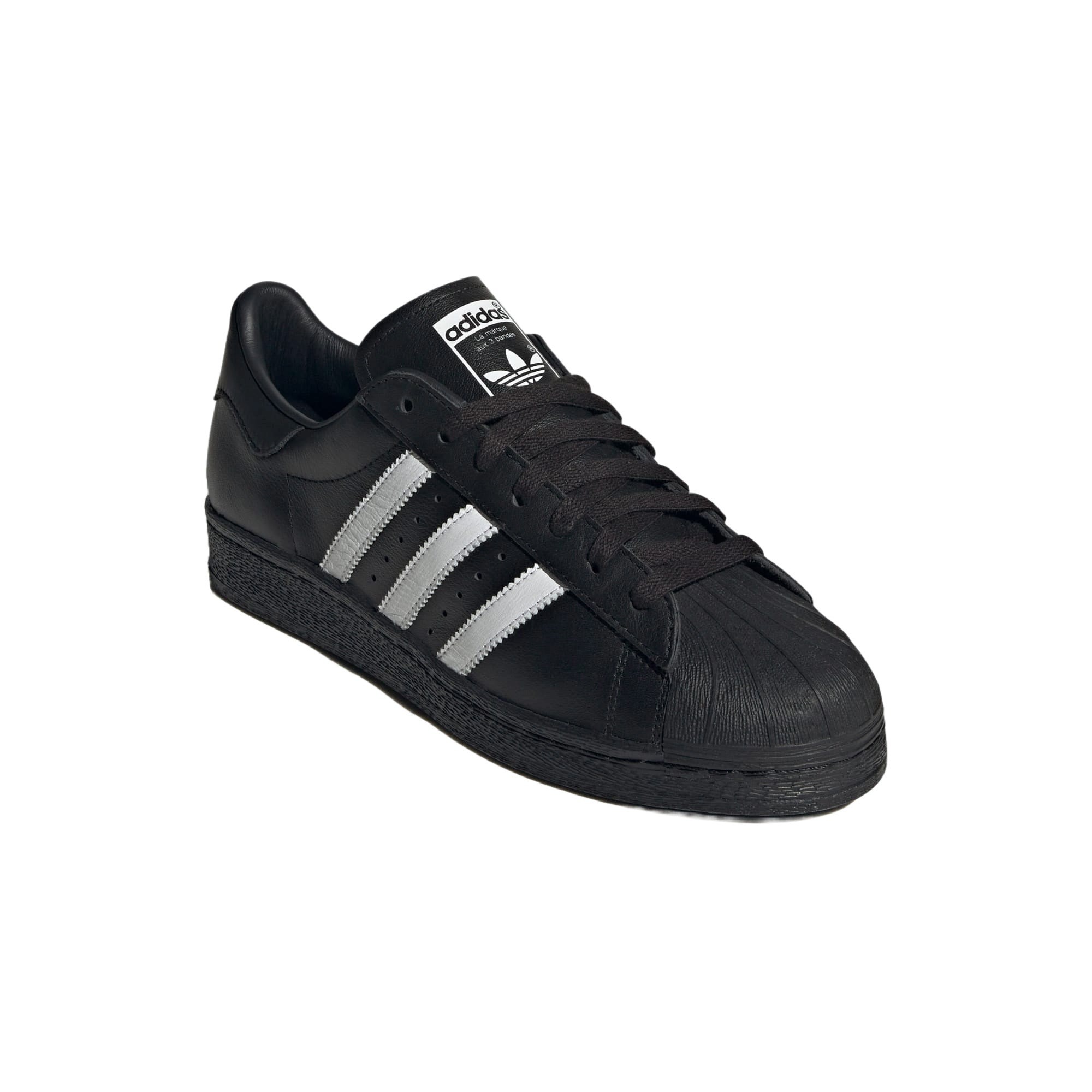 The adidas Superstar 82 Core Black White features a Core Black/Footwear White/Core Black colorway. This adidas Superstar 82 was first released for $130 on June 11, 2024.