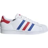 The adidas Superstar Americana features a Footwear White/Collegiate Royal/Team College Red colorway. This adidas Superstar was first released for $72 on October 01, 2020.