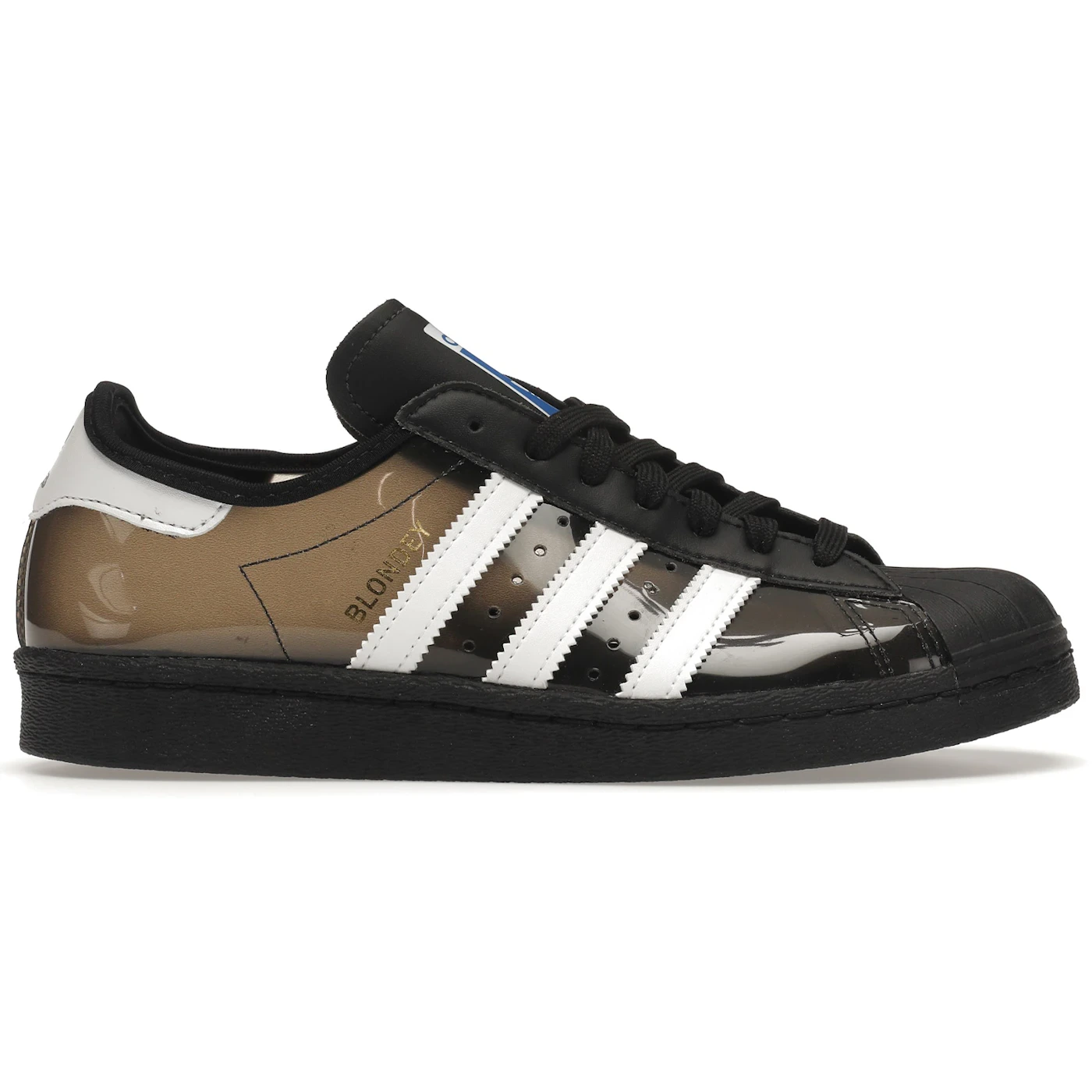 The adidas Superstar Blondey McCoy Black is a sleek and stylish sneaker that combines classic design with modern flair. Released on January 30th, 2021, this shoe features a black leather upper with contrasting white stripes and a gold foil logo on the side. The shoe is designed in collaboration with British skateboarder and artist Blondey McCoy, who brings his unique aesthetic to the iconic Superstar silhouette. The shoe also features a rubber shell toe and a durable rubber outsole for added traction and durability. Priced at $110, this shoe is a must-have for anyone looking for a versatile and stylish sneaker that can be worn with a variety of outfits.