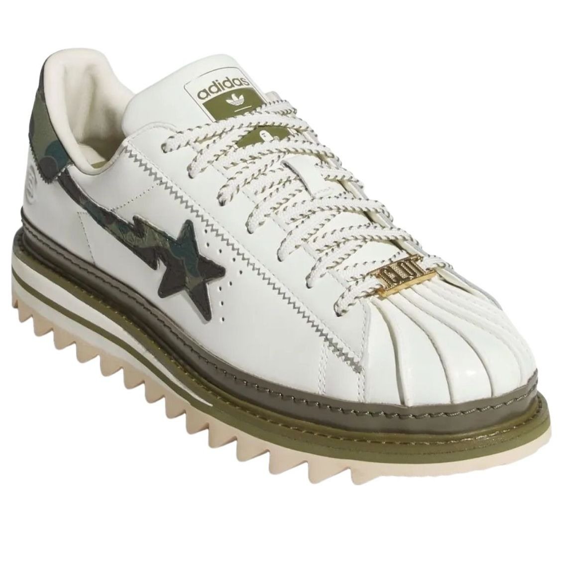 The adidas Superstar CLOT by Edison Chen x Bape Off White features a Off White/Branch/Olive Cargo colorway. This adidas Superstar was first released for $220 on January 01, 2026.