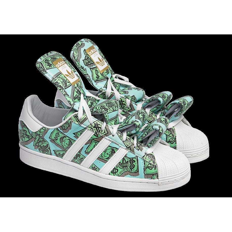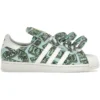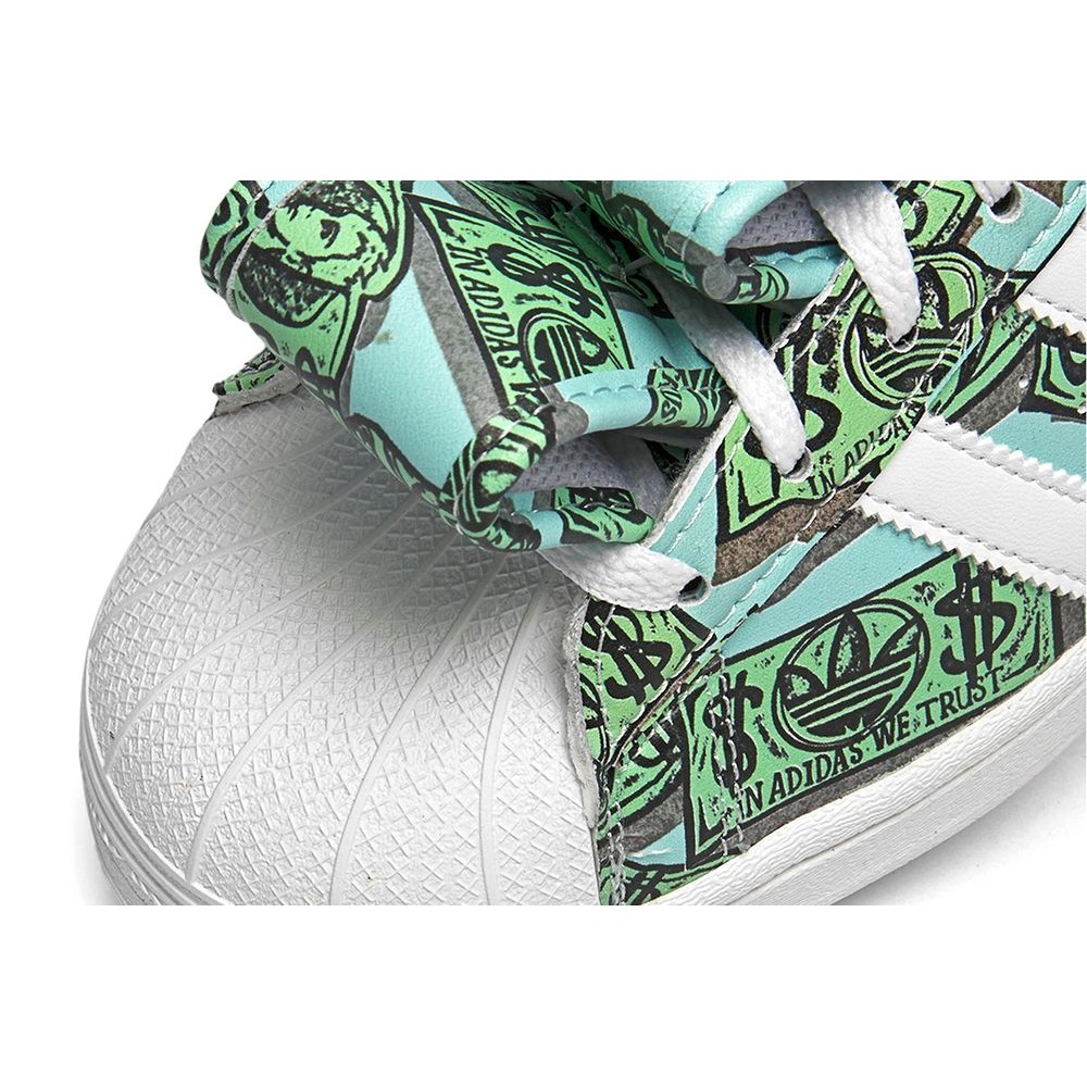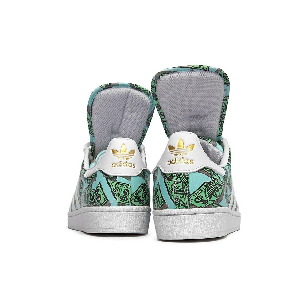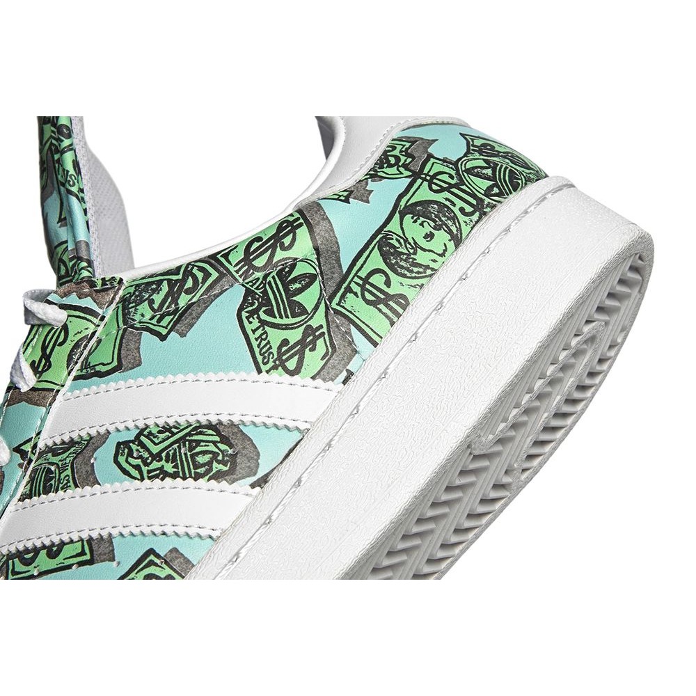 The adidas Superstar Jeremy Scott Money features a Footwear White/Footwear White/Gold Metallic colorway. This adidas Superstar was first released for $120 on December 19, 2022.