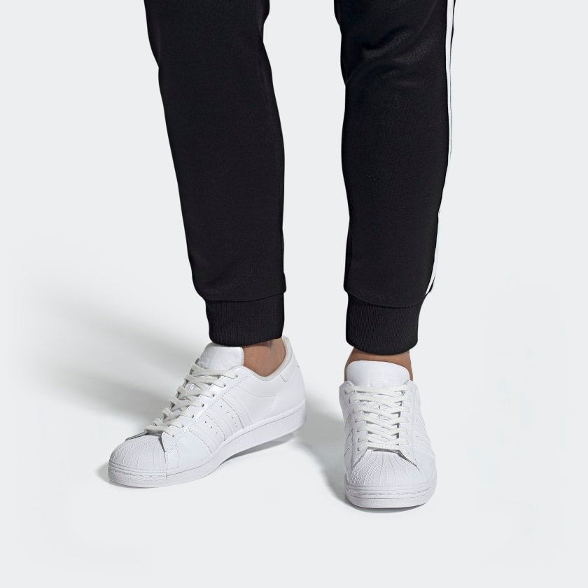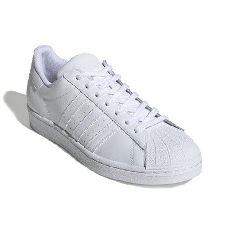 The adidas Superstar Triple White gives us a clean look rooted in sports history with its uninterrupted white leather upper and classic rubber shell toe cap. It was originally designed back in 1969, and has only gotten better since then. The Superstar Triple White (2022) by adidas comes with a full-grain leather upper treated for a soft feel, complemented by serrated three leather stripes and a Trefoil-branded heel tab. The molded rubber shell toe gives you some added protection, while the sock liner combines a lightweight EVA midsole and OrthoLite cushioning for comfort. The traditional rubber herringbone tread outsole is there for traction on numerous surfaces. One of the things we like about the breathable perforated side panels is how they improve airflow. We also appreciate the flat cotton laces that lock in place without loosening. The clean lace-up system also complements the minimalist color palette. It retailed at $100 when it was released on December 23, 2019.