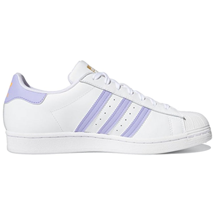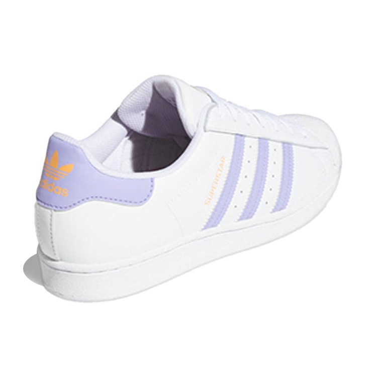 The adidas Superstar White Light Purple features a Cloud White/Light Purple/Hazy Orange colorway. This adidas Superstar was first released for $85 on March 14, 2021.