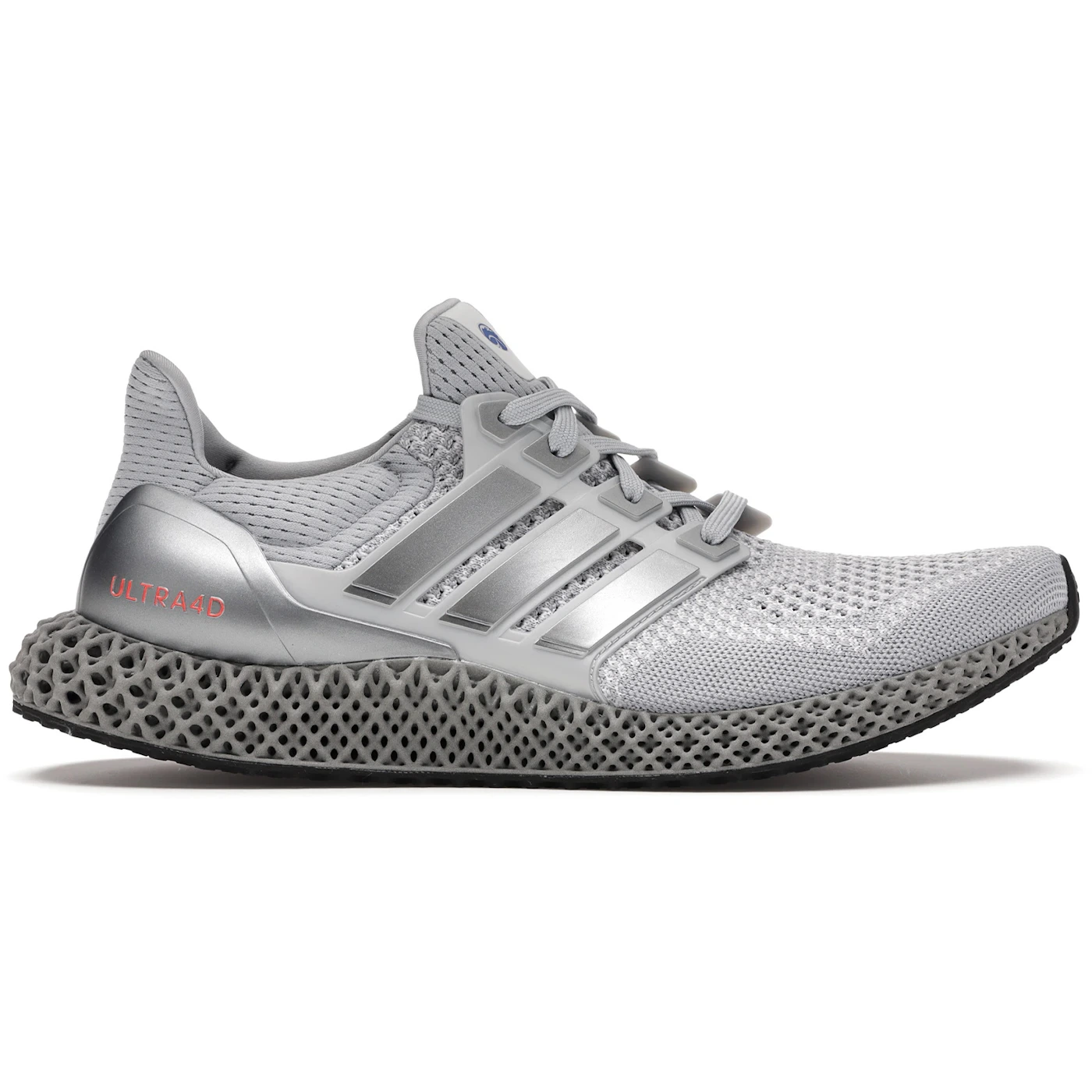 The adidas Ultra 4D NASA Halo Silver is toned in three primary color schemes: Solar Red, Silver Metallic, and Halo Silver.The adidas Ultra 4D in NASA Halo Silver presents a neutral color scheme for this lightweight shoe. The 4D midsole, created through a process involving light, oxygen, and liquid resin, boasts a lattice structure with a reflective finish. On the upper part of the shoe, the knit construction utilizes Primeblue, a material made from high-performance recycled components, including Parley Ocean Plastic. It features a traditional NASA emblem on the heel and blue Artemis insignia on the tongue, which represents elements of NASA.Our experts found the knit construction technology used on this sneaker to be appealing for sporting activities as it enables improved breathability and comfort when engaging in outdoor sports. At the time of its launch on December 3, 2020, the adidas Ultra 4D NASA Halo Silver had a recommended retail value of around $220.