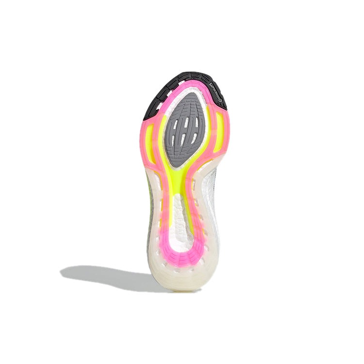 The adidas Ultra Boost 21 White Solar Yellow adorns the 2015 version in a white, Core Black, pink, and Solar Yellow color patterns.The sneaker’s upper is constructed of a prime knit material with a more specific knit construction for added performance and support. It also incorporates pink color scheme, while a recycled Parley Ocean Plastic material shades in its outsole design. White color dominates the upper with accents of Lime Green on part of the vamp section, heel stabilizer and inner lining, while Solar Yellow makes its way on the outsole, and black on the Three Stripe branding on the quarter panels and toe cap. Underfoot, the thick boost midsole incorporates a torsion system, and a rubber outsole graces the shoe.Our experts think the unique feature of this shoe is its torsion system, which consists of Light Energy Push for a more reactive performance. The adidas Ultra Boost 21 White Solar Yellow debuted on February 4th, 2020, and retailed at $180.