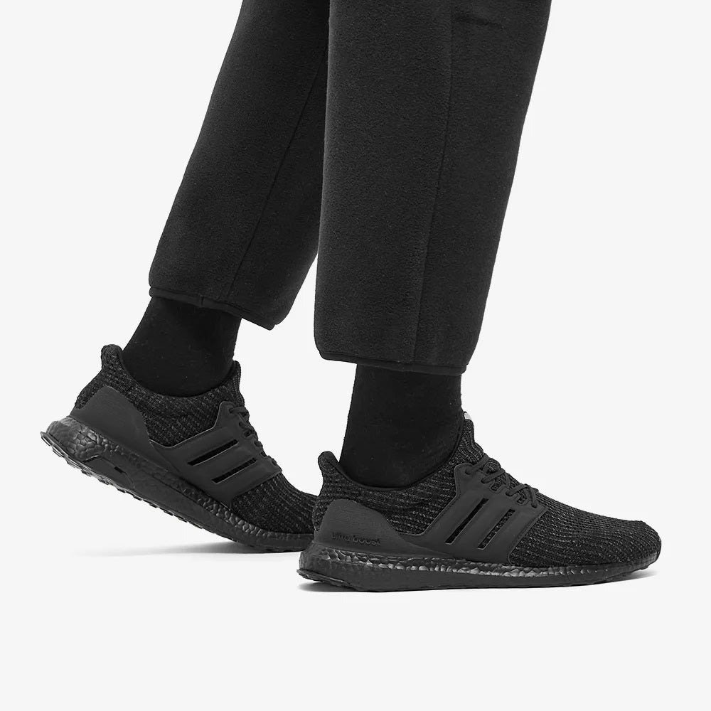 The adidas Ultraboost 4.0 DNA Triple Black is the fourth iteration of the adidas Ultraboost DNA running shoe, offering comfort and cushioning. It offers a full-length BOOST midsole that generates springy, responsive energy. adidas Ultraboost 4.0 DNA Triple Black features a core black colorway designed into a stretchy but snug recycled PRIMEKNIT upper. The shoe also has a floating arch to accommodate an ample range of motion. The water-repellent upper is an innovative complement to the shoe s widely appreciated sticky traction and lug layout.The adidas Ultraboost 4.0 DNA Triple Black was released on December 12, 2020, for $200.