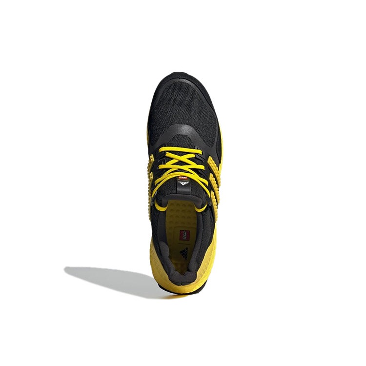 The adidas Ultra Boost LEGO Color Pack Yellow represents one of many collaborations between the iconic sports shoe company and LEGO. This sneaker combines an eye-catching dual-chromatic colorway with high-performance running shoe technology.The adidas x LEGO Ultra Boost in Yellow and Black has an upper with a base of black Primeknit for lightweight breathability. Black and yellow synthetic overlays give the shoe style as well as support for your foot while running. The bright yellow heel and three side-panel stripes have raised circular lugs as a nod to LEGO. Yellow laces crisscross over a black tongue with dual branding.The feature that makes this running shoe stand out is its sole unit, which is designed for everyday running. The midsole is composed of adidas Boost cushioning for maximum impact absorption and energy return. The black Continental rubber of the outsole provides grip as well as venting that allows the Boost cushion to expand. Torsion technology on the outsole connects the heel to the forefoot, supporting the midfoot so that the foot rolls off with more ease while running. The adidas Ultra Boost LEGO Color Pack Yellow was released on October 1st, 2021, for $200 retail.