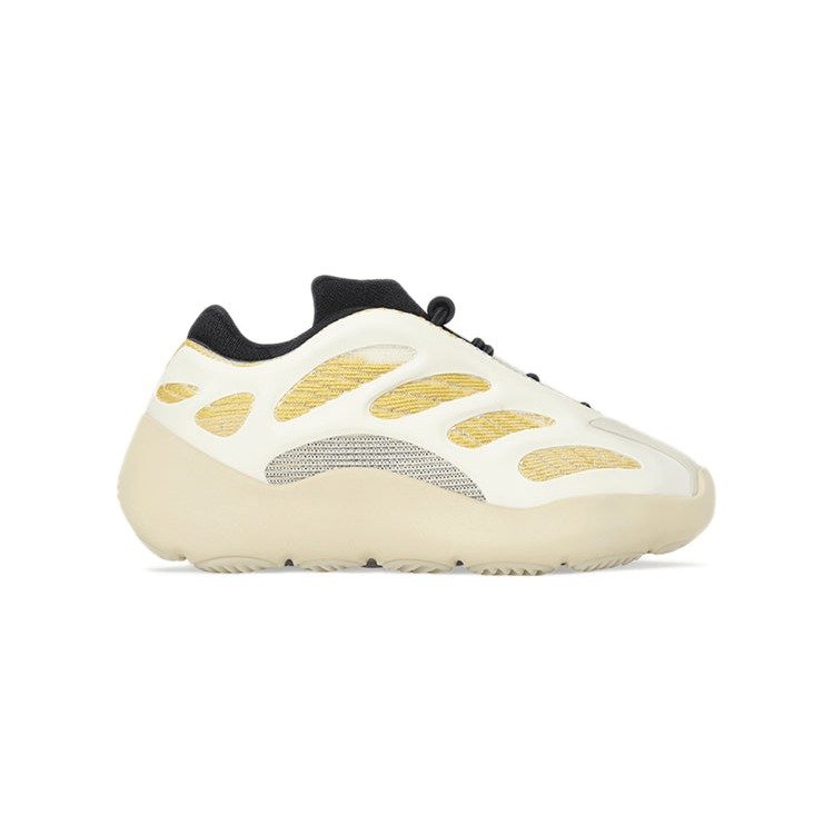 The adidas Yeezy 700 V3 Safflower (Infants) imagines the signature Yeezy 700 V3 Safflower in a size for babies. Like the adult-sized version, the infants model features an RPU overlay that forms a cage around the mesh upper. RPU is made of rubber as well as other materials often found in molded plastic, so the overlay cage appears stiff, but it has some give. The sneaker gets its name from the safflower-colored mesh with gray stripes that peeks out from behind the cage. On the inside, a contrasting black bootie provides a secure fit and tonally matches the thin laces. The sneaker doesnt have a tongue, which contributes to its sleek design. Our experts at Newsole like the rounded elements that can be found throughout the shoe, including the rounded toe. The infant-size adidas Yeezy 700 V3 Safflower (Infants) was released on November 14th, 2020, and retailed at $140.