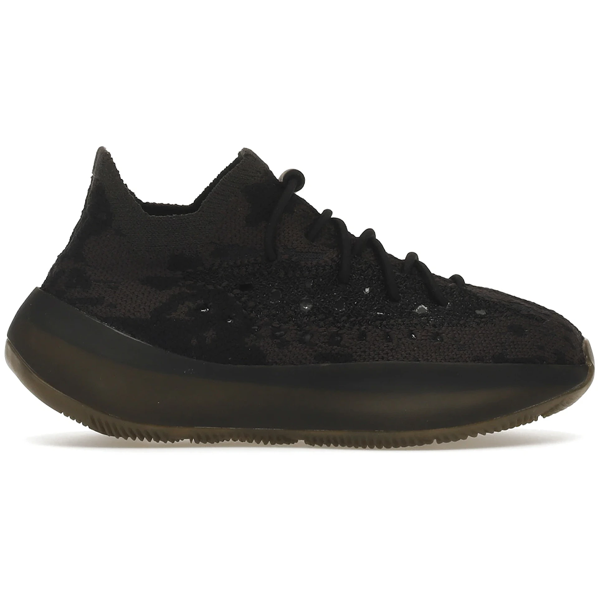 The adidas Yeezy Boost 380 Onyx (Kids) is a comfortable sneaker that hails from the design collaboration that once existed between Kanye West and adidas, that adidas now controls. This sneaker is specifically sized for kids. The Kids Adidas Yeezy Boost 380 in Onyx features an upper crafted with black and brown fibers of stretchy, breathable Primeknit. Black rope laces feature a black lace lock that matches the heel tab and Prime knit collar. The Boost midsole offers a soft landing and energy return with every step, encased in a thin black rubber cage. A gum rubber outsole features wavy lines of traction and vents through which you can see the white Boost. Our favorite aspect of this sneaker is the subtle side-panel stripe of all-black that works its way through the upper of this kids sneaker. The adidas Yeezy Boost 380 Onyx (Kids) was released on November 28, 2020, for an original retail price of $170.