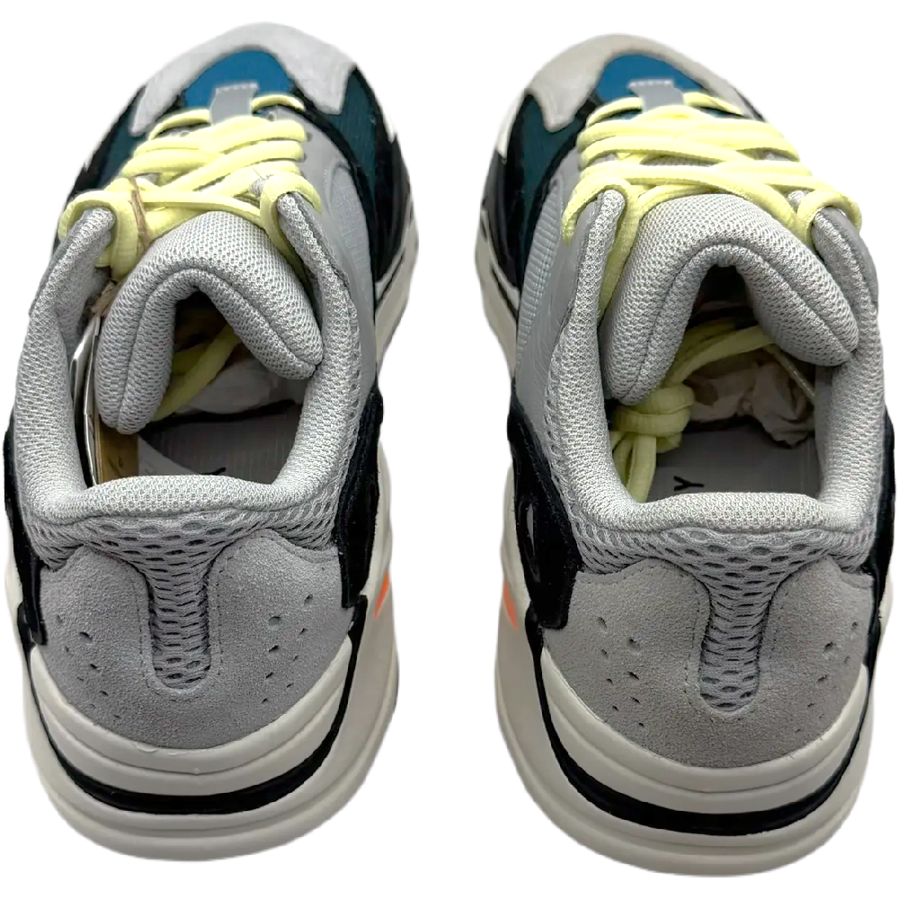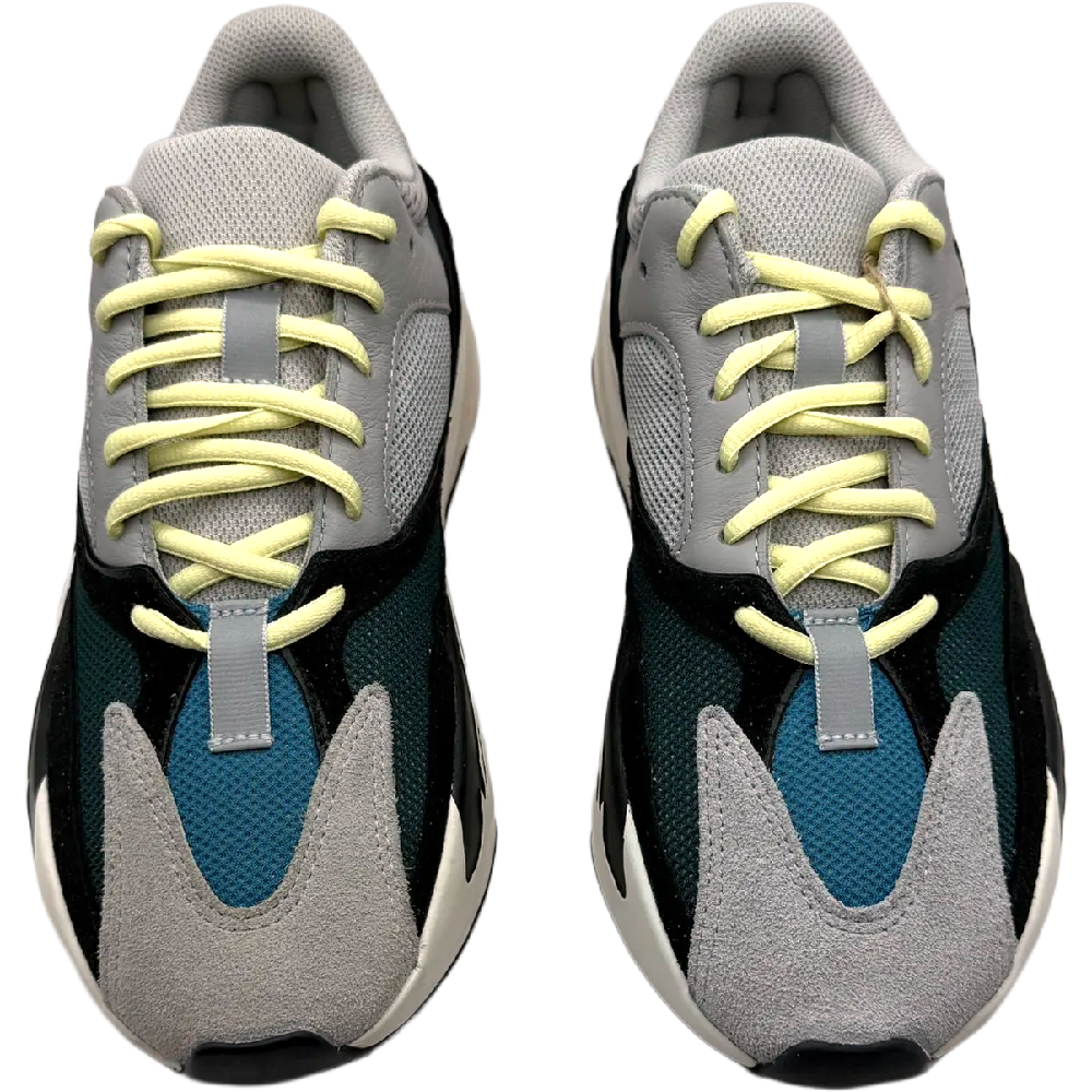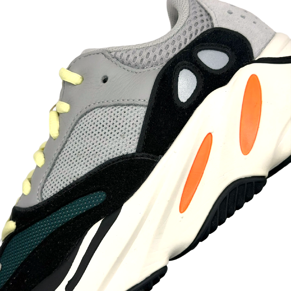 The Yeezy 700 Boost Wave Runner is the shoe that led Yeezy’s pivot from a sleek, minimal aesthetic to a chunky, 90s inspired one. This was the gateway sneaker between knit runners like the 350 and the grungy skate look of the 550. The Yeezy 700 Wave Runner features a grey mesh and leather upper with black suede overlays and teal mesh underlays. At the base, a thick Boost sole and contrasting hits of orange complete the design.