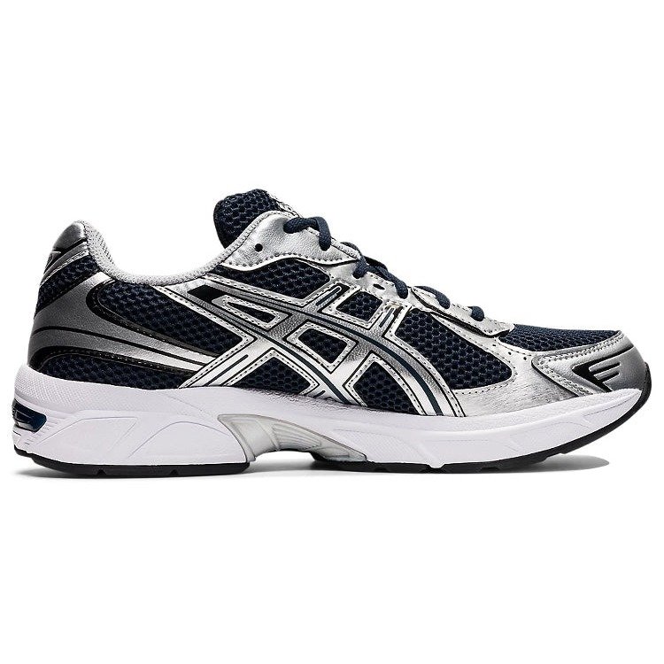 The ASICS Gel-1130 French Blue Pure Silver features an upper crafted from synthetic leather paneling on top of mesh fabric in French Blue s deep navy hue.Japanese athletic wear brand ASICS is known for the comfort and durability of their running shoes. Evolving over decades, the GEL-1130 sneaker offers a tribute to the ninth iteration of the GEL-1000 series. Updates include the synthetic leather paneling, which modernizes the shoe s aesthetic. The heel s GEL technology offers ASICS signature cushioning. A white curvilinear midsole pops against the Pure Silver and navy upper, balanced by a black and French Blue outsole, with GEL technology in the heel. ASICS branding accents the tongue.In our opinion, the best feature of the Gel-1130 is its Pure Silver overlays, which give the shoe versatility for street or sports wear. The ASICS Gel-1130 French Blue Pure Silver released on March 10, 2022, and retailed for $85.