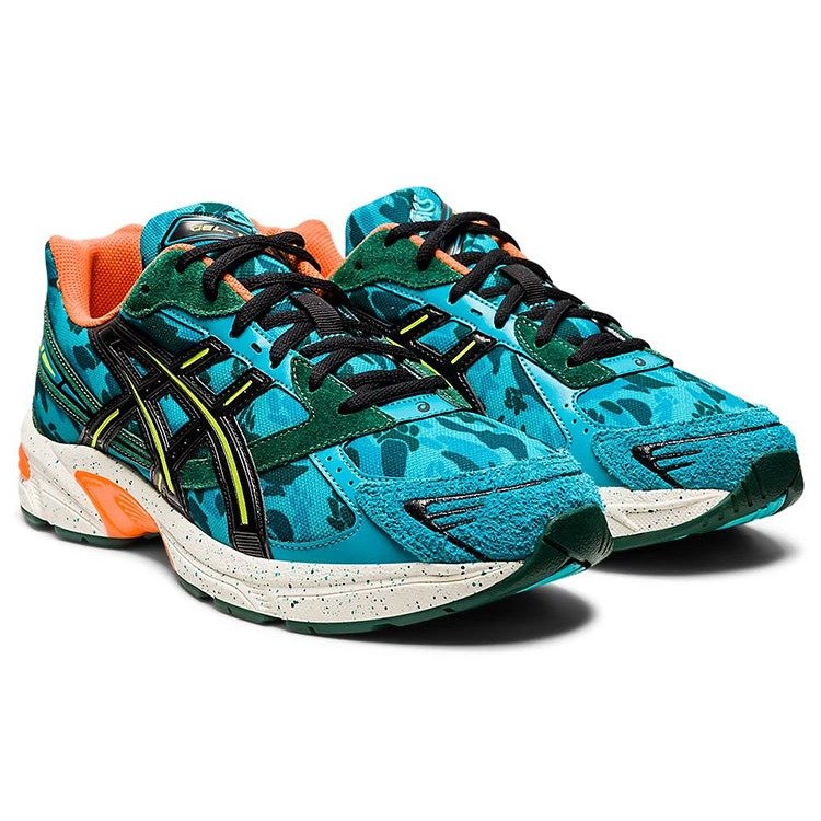 The ASICS Gel-1130 Lagoon Camo features a Lagoon/Black colorway. This ASICS Gel-1130 was first released for $95 on April 30, 2022.