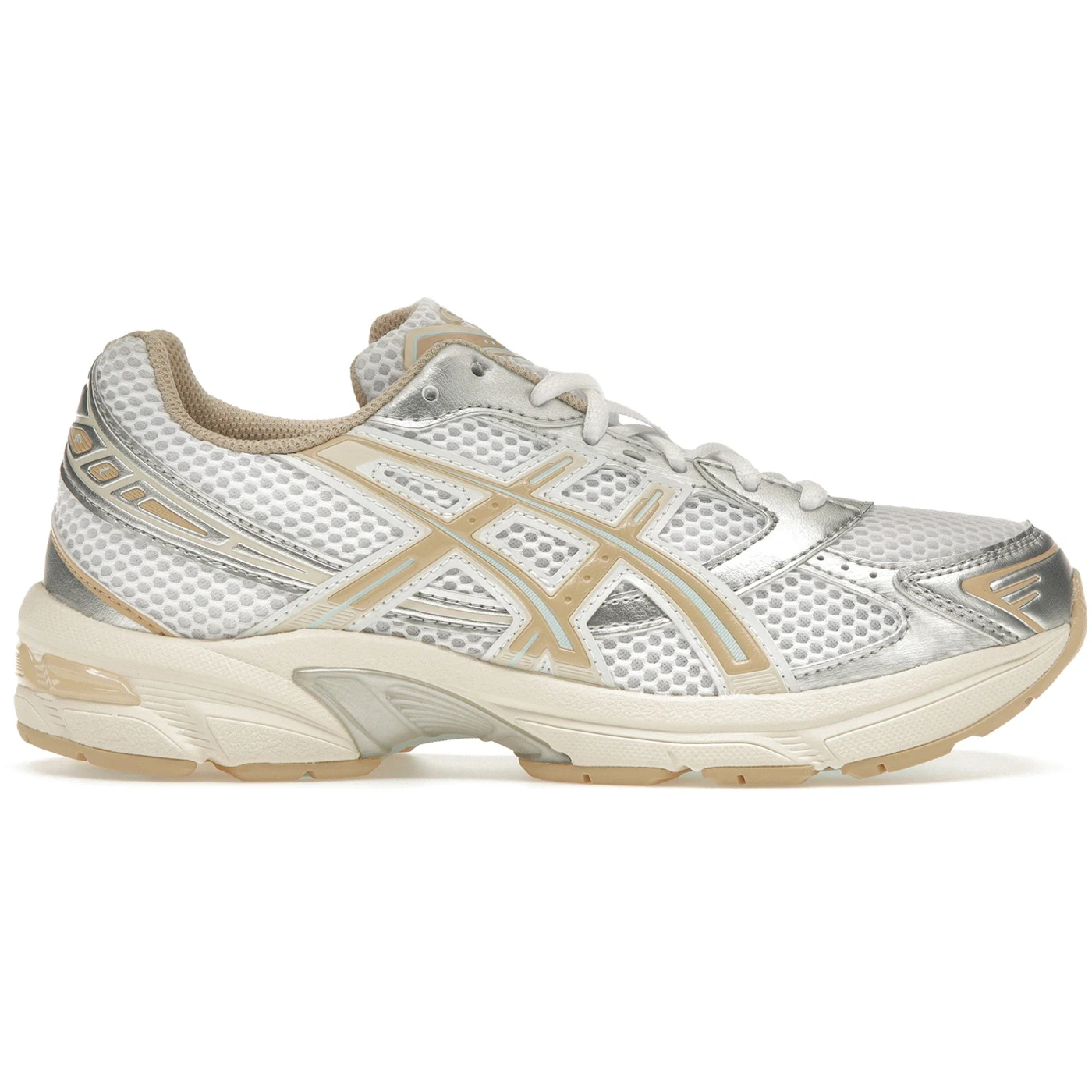 Stepping out in pure style, the ASICS Gel-1130 for Women reveals itself in the pristine White and Dune colorway. This sneaker stands out with an upper that artfully incorporates breathable mesh, wrapping the vamp and extending to the sides, ensuring not just a luxe look but optimum airflow too. While the majority of its form boasts this mesh, the subtleties lie in the intricate detailing and the plush cushioning of the Gel technology. Drenched in the White and Dune palette with silver accents incorporated throughout, this silhouette is more than just a sneaker; it’s a statement. The design intricacies include ASICS renowned stripes and the Gel badge of honor on the heel. Our absolute fave? The comfort level that the Gel midsole delivers, making every step feel like walking on clouds.Making strides in both design and tech, the ASICS Gel-1130 White Dune dropped with a price tag that of$95.