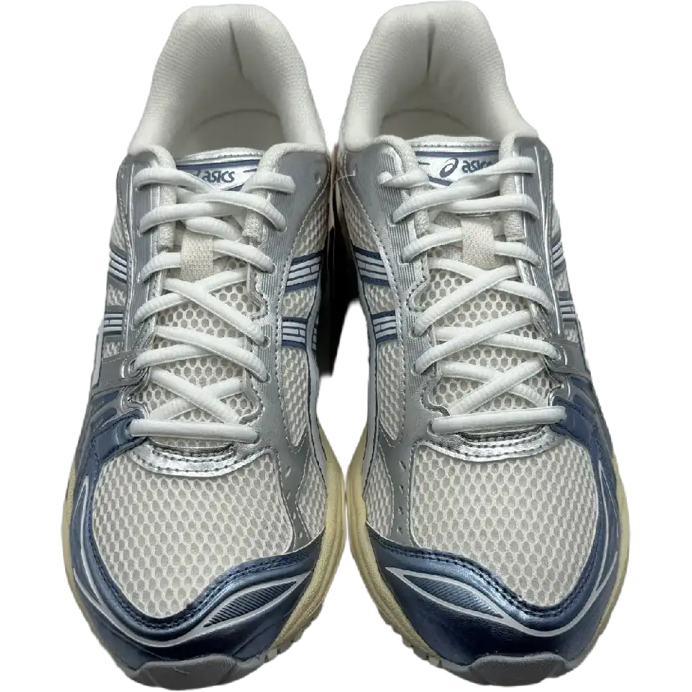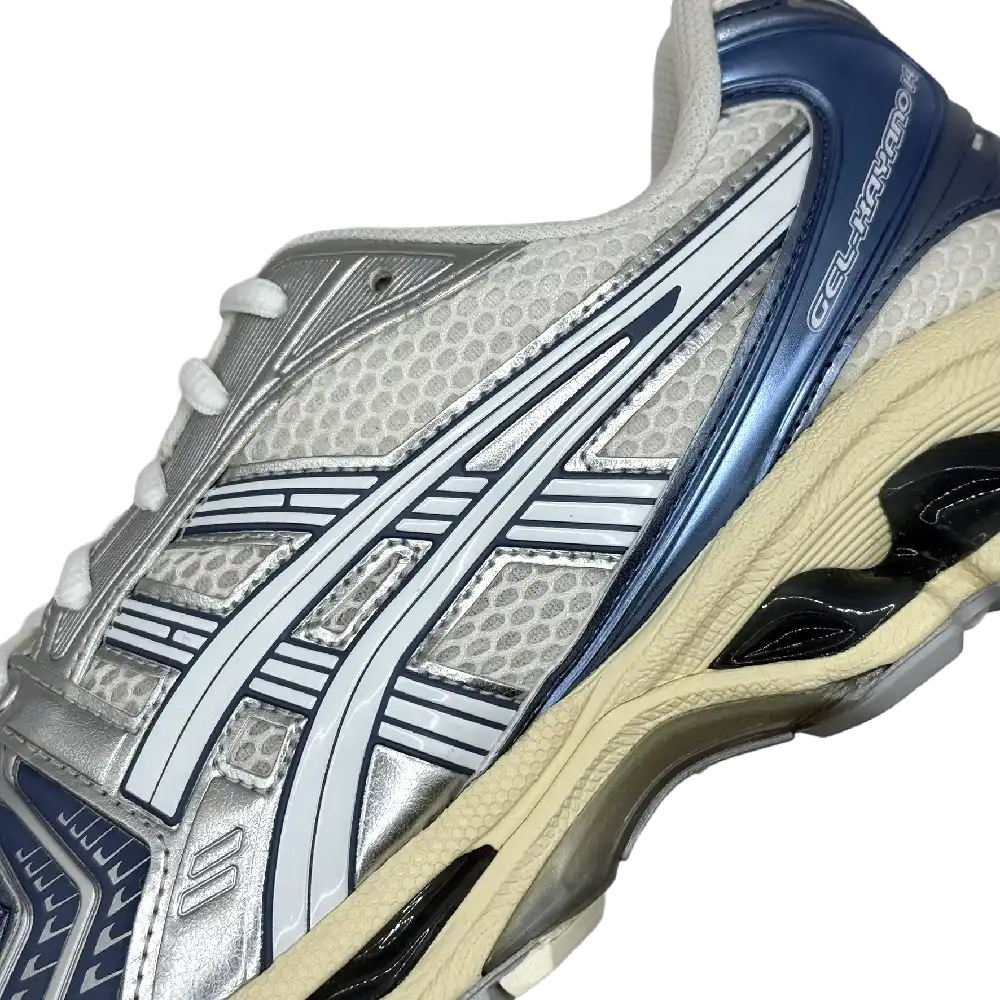 The ASICS Gel-Kayano 14 Cream Metallic Blue blends classic running technology with modern aesthetics. This retro-inspired sneaker highlights ASICS’ commitment to performance-driven designs by giving you a detailed interplay of Cream mesh, Metallic Blue accents, and chrome overlays in a functional and sporty shoe.The Cream Metallic Blue Gel-Kayano 14 by ASICS features a Cream mesh base for breathability, complemented by Metallic Blue details on the heel, toe, and branding. Chrome overlays improve the design’s look and feel, while the navy-blue accents add contrast. First introduced in 2008, the Gel-Kayano 14 was reimagined in 2021 for lifestyle and performance wear, maintaining ASICS’ innovative GEL cushioning for improved comfort.As experts, we enjoy the ASICS Gel-Kayano 14 Cream Metallic Blue because of its GEL cushioning, which provides exceptional shock absorption for a smoother stride. Additionally, the chrome overlays add a layer of structure and style. The sneaker retailed for $150 and was officially released on September 19, 2024.