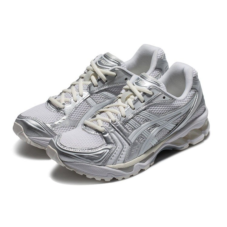 The ASICS Gel Kayano 14 JJJJound Silver White is a redesigned version of the original ASICS GEL-KAYANO 14.This shoe boasts an upper with a white mesh base and silver synthetic leather overlays. The upper lies on a midsole with GEL Technology cushioning and ASICS’ TRUSSTIC support system for a comfortable fit. nMeanwhile, the midsole lies on a rubber outsole. It features details such as the ASICS logo on its tongue, a white JJJJound logo on its lateral side, and a GEL-KAYANO 14 logo on the rear of its heel.The ASICS Gel Kayano 14 JJJJound Silver White was released on August 26, 2022. Initially, it had a retail price of $180.