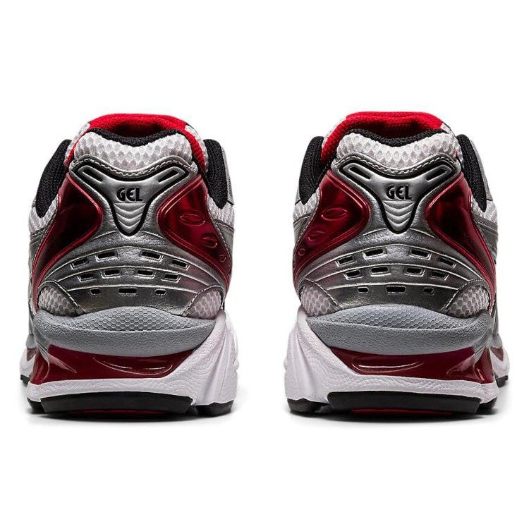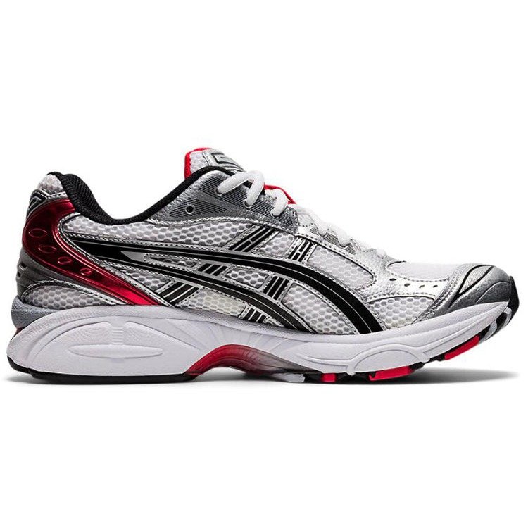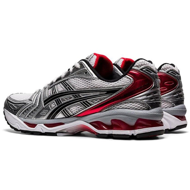 The ASICS Gel-Kayano 14 White Classic Red was released as part of the long-running Gel Kayano series, a collection of running shoes designed for stability and support by ASICS.The shoes have a predominantly silver upper, complemented by red and black accented lines running across the upper. It is made from a combination of mesh and other synthetic materials which help to keep the shoes lightweight and breathable, allowing for optimal air ventilation during intense running activities. The sole unit, on the other hand, utilizes the Trusstic System to reduce the weight of the sole unit while maintaining structural integrity.The ASICS Gel-Kayano 14 White Classic Red has a few standout features that our experts love, including Gel cushioning, Dynamic DuoMax Support System and an Impact Guidance System (IGS). They all work together to help improve comfort and performance during running activities. The shoes were initially released at the retail price of $130 on December 29th, 2020.
