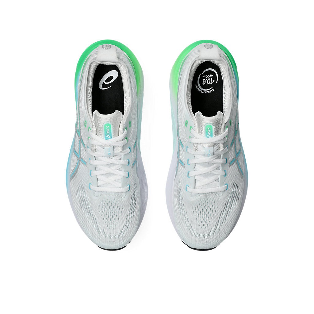 The ASICS Gel-Kayano 31 White Bright Cyan features a White/Bright Cyan colorway. This ASICS Gel-Kayano 31 was first released for $165.
