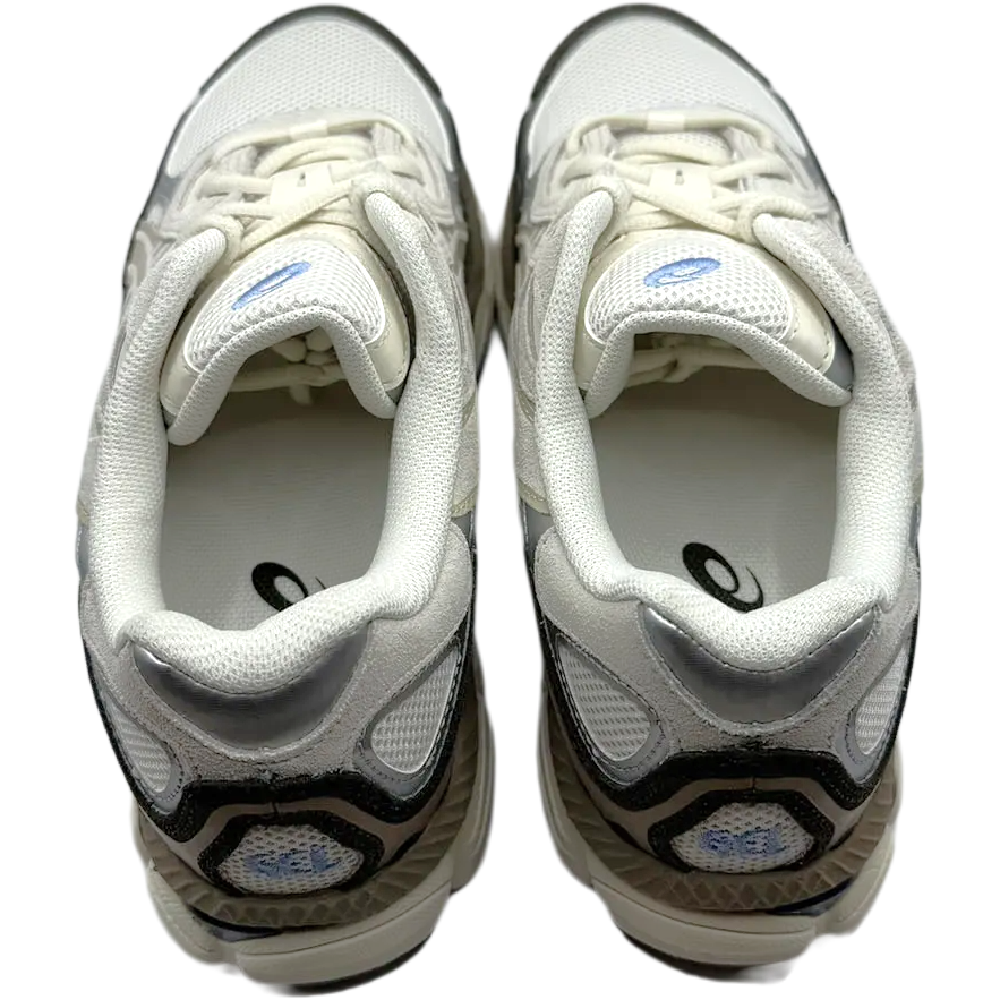 Details from two classic sneakers from the 2000sโ€”the Gel-Nimbus 3 and the Gel-MC Plus Vโ€”are incorporated into the mixed-material upper. Cream overlay layers are attached to a cream mesh foundation that has metallic silver overlays. Cream is also displayed by the recognizable Formstripes, which weave a web over the quarter panels. The suede mudguard that encircles the shoe is one of the most striking design features. It matches the beige hues of the midsole and has the word “ASICS” written on it. With the tooling method derived from the Gel-Cumulus 16, the retro design gains a contemporary touch. The midsole has soft foam and gel inserts for enhanced cushioning.