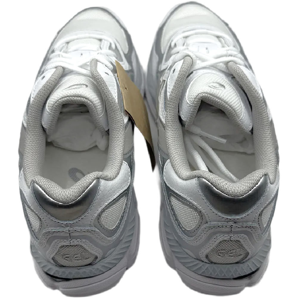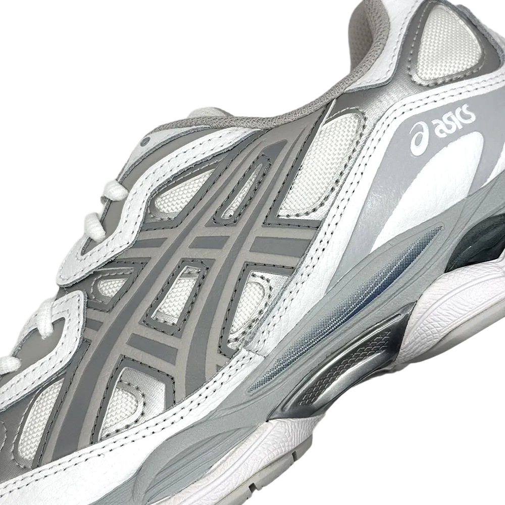 The ASICS Gel-NYC White Oyster Grey is an athletic shoe that takes its design inspiration from the early 2000s running era. The White Oyster Grey ASICS Gel-NYC has a base of white mesh on the upper. Metallic silver overlays cross the upper over the mesh for support, including on the toe box, up the sides, and around the heel. The ASICS design appears on each side in Oyster Grey, while the white mudguard also features Oyster Grey embellishments near the heel. ASICS branding is seen on the lateral heel and tongue, while Gel branding is found on the back of the heel. The shoe rests on a midsole composed of different shades of gray and white and is equipped with Gel technology. Our favorite thing about this shoe is the crisp, clean colorway, which allows the shoe to be versatile and still neutral. The ASICS Gel-NYC White Oyster Grey was released on October 1, 2024, for $130.
