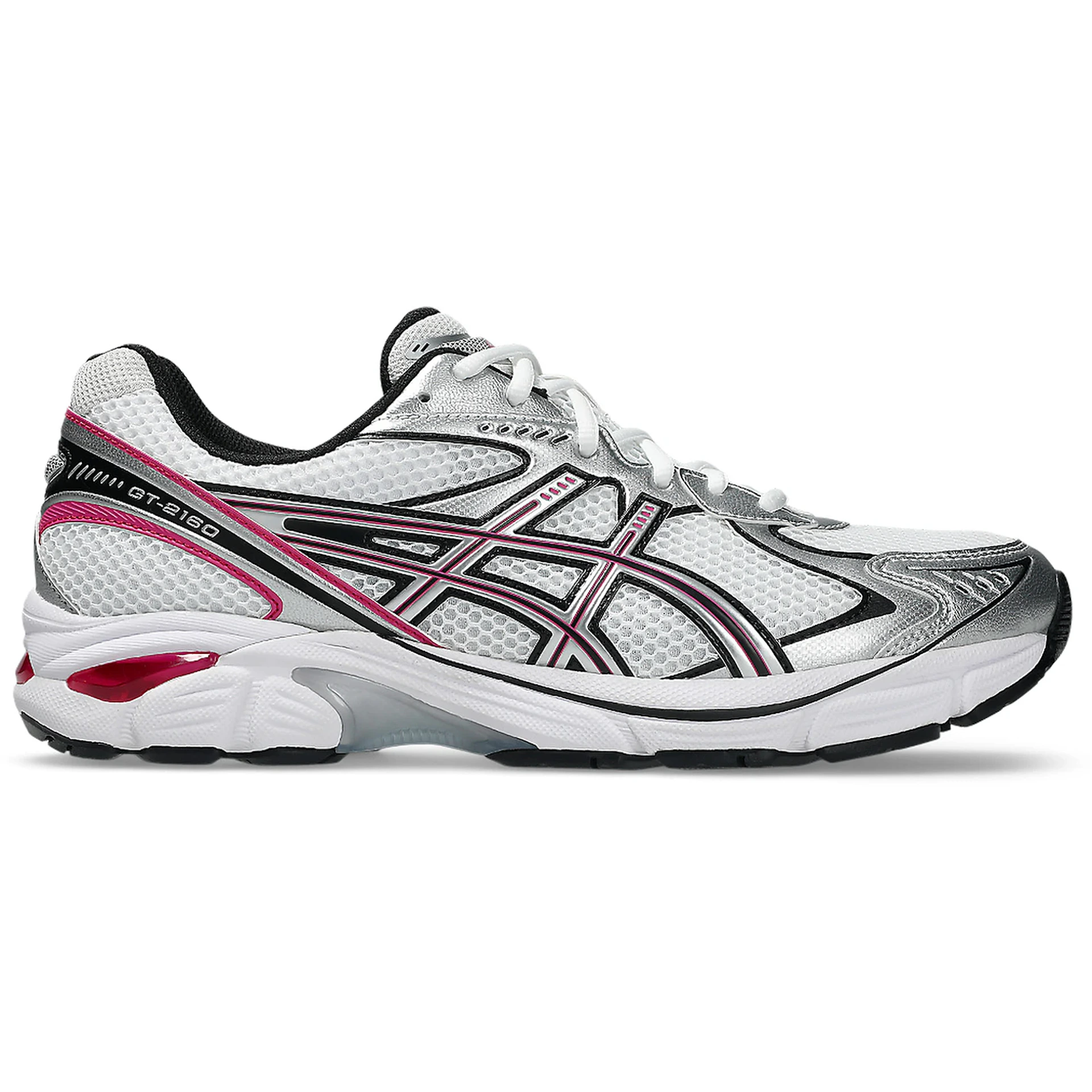 The ASICS GT-2160 White Fuchsia Purple features a White/Fuchsia Purple colorway. This ASICS GT-2160 was first released for $125.
